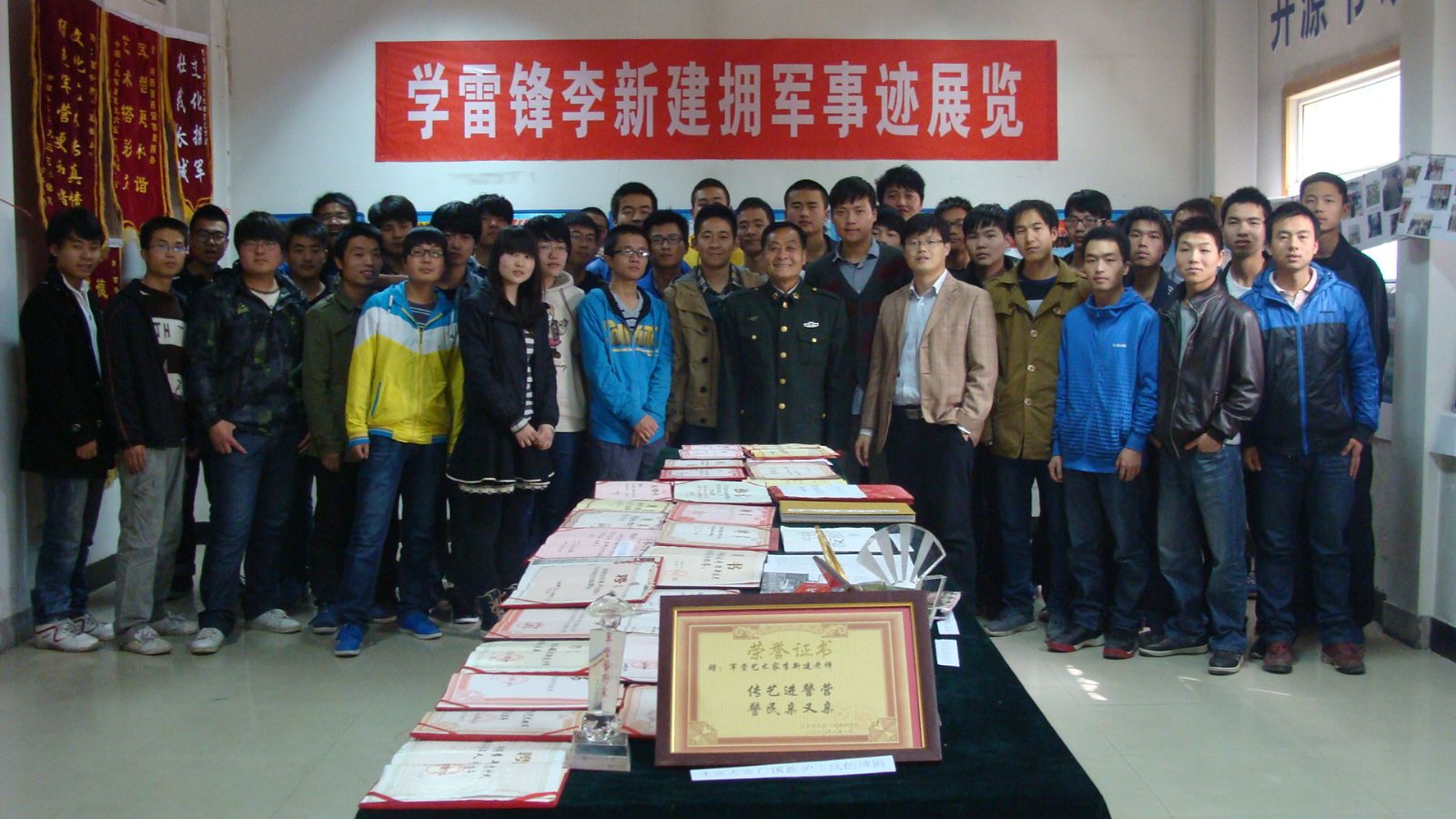 为纪念毛主席“向雷锋同志学习”题词五十周年和全国双拥工作七十周年,学院举办了李新建同志学雷锋拥军事迹展览。