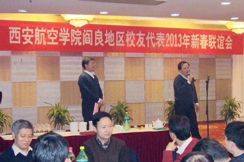 1月16日晚,我院在阎良区西飞宾馆隆重举行“阎良地区校友代表2013年新春联谊会”。学院党委书记苗润才、院长陈万强、党委副书记周建华、副院长张同怀出席,党委(学院)办公室主任、校友会秘书长宁永录主持联谊会。来自西安阎良航空高技术产业基地、西安飞机工业(集团)公司、中国飞行试验研究院、中航工业第一飞机设计研究院等多家单位的80多位校友代表和学院部分系部、部门负责人参加了联谊活动。