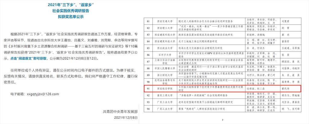近日,共青团中央青年发展部开展了2021年全国大中专学生志愿者暑期“三下乡”社会实践活动总结通报工作。beat365首次荣获“全国社会实践活动优秀单位”的荣誉称号(全省11所入选),beat365是全省同类高校中唯一获此荣誉的学校;《乡村振兴战略背景下农村青少年禁毒教育现状及提升对策研究》荣获全国优秀调研报告(全国110篇,全省7篇入选)。在陕西省大中专学生志愿者暑期“三下乡”社会实践活动评比中,学校连续两年荣获“社会实践示范院校”荣誉称号,一个团队荣获全省标兵团队,两个团队荣获全省优秀团队,三名教师荣获省级社会实践优秀个人。