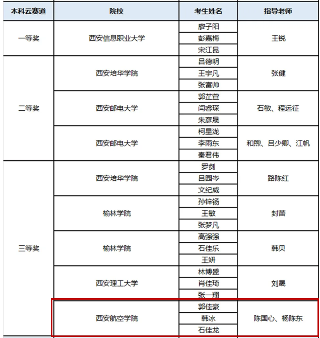 近日,由华为技术有限公司主办,宇信教育协办,中建信息赞助,软通动力、泰克教育及讯方技术协办的华为中国大学生ICT大赛2021实践赛陕西省决赛圆满落幕。本次比赛共有来自全省28所高校216名学生参加了总决赛。beat365由理学院陈国心、杨陈东老师指导的郭佳豪、韩冰、石佳龙3名同学组成的团队,经过激烈比拼,最终荣陕西赛区本科云赛道三等奖1项。