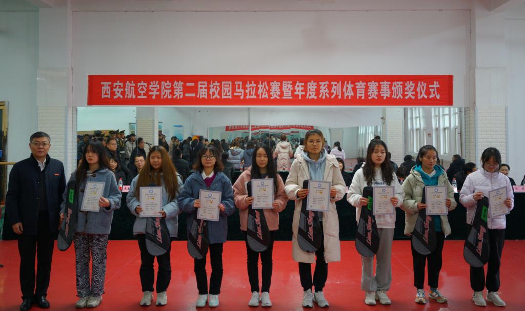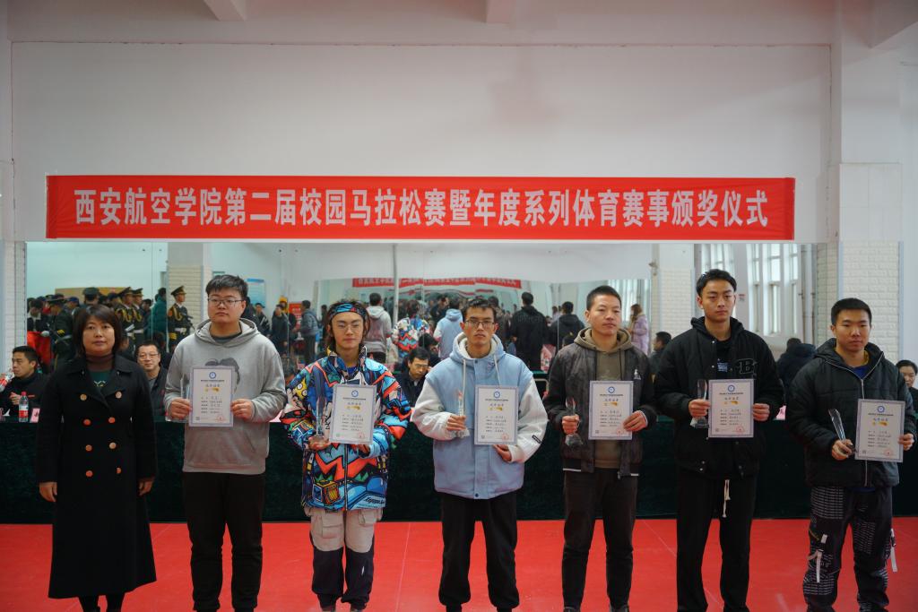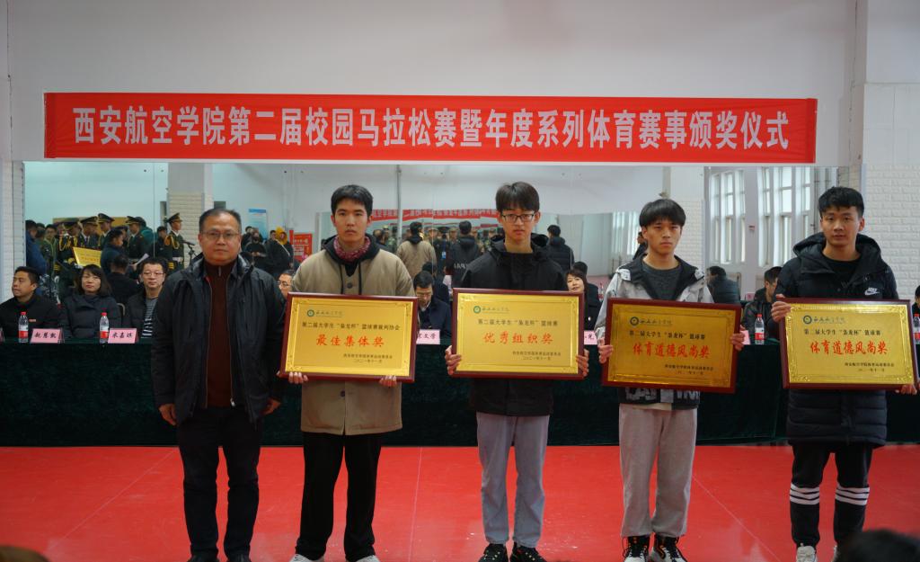 12月10日,由学校体育运动委员会主办,体育部承办的beat365英国官网网站第二届校园马拉松赛暨年度体育赛事颁奖仪式在阎良校区成功举办。本届校园马拉松比赛设置了男子7公里和女子3.5公里两个项目。来自阎良校区各二级学院224名学生参加了比赛。副校长宋文学、体育部主任张建、各二级学院负责人及部分师生参加了活动。活动由体育部副主任李然主持。