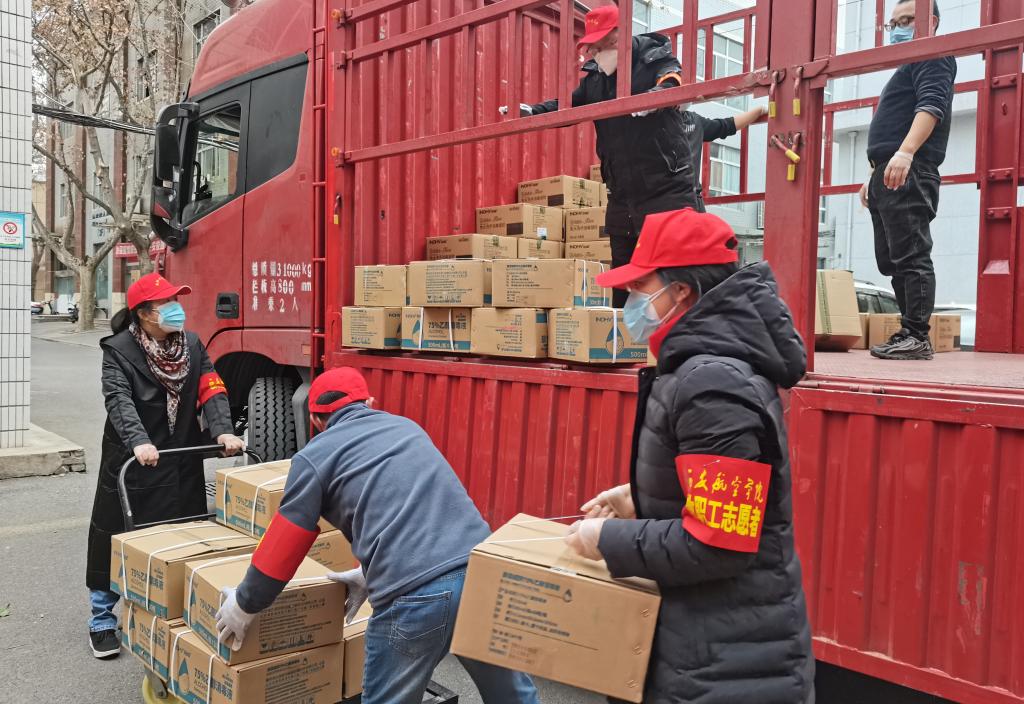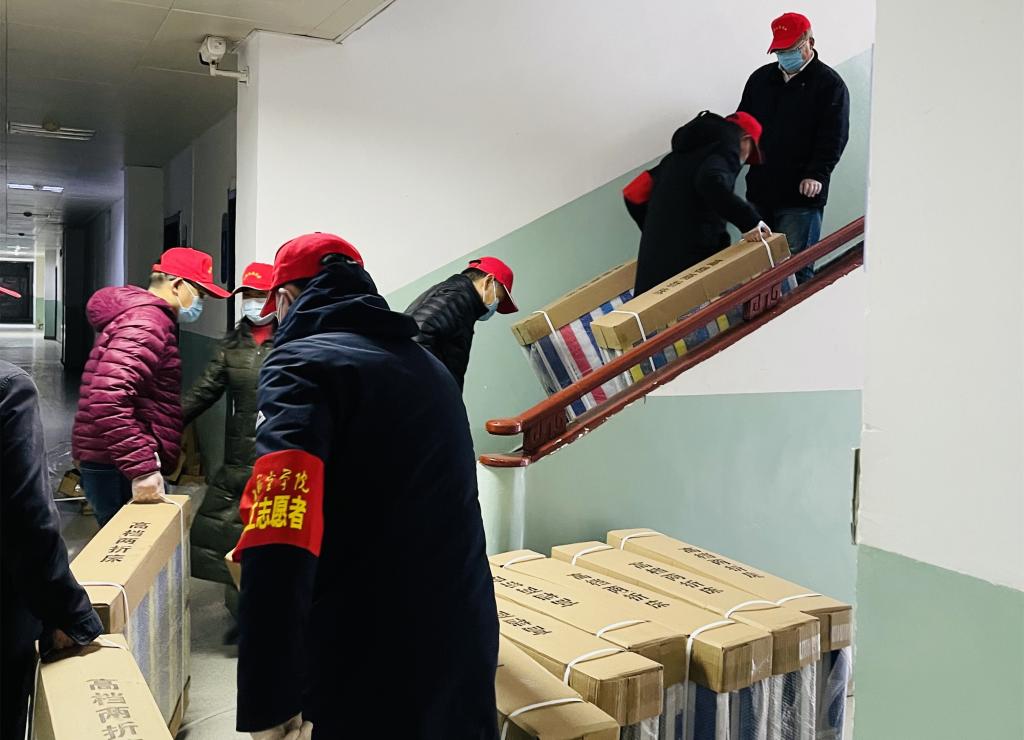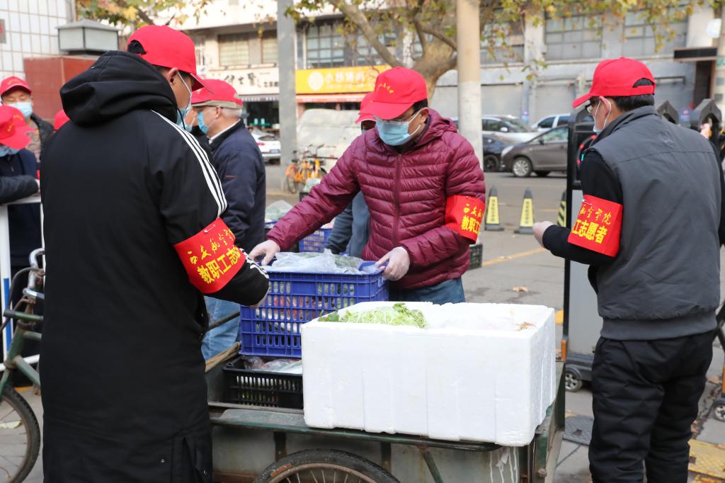 同时,生活区巡逻是志愿者分队全员参与的另一项重要任务。数九寒天,室外将近零度,从早到晚巡逻、接待外访,帮生活区的教职工取药、送餐、买电、上门送生活必需品,每天数十次奔波于校园各处…….这些,都是志愿者在封控期间最日常的工作。正是有了这些普普通通的“日常”,才有了那么多人安心居家的底气。