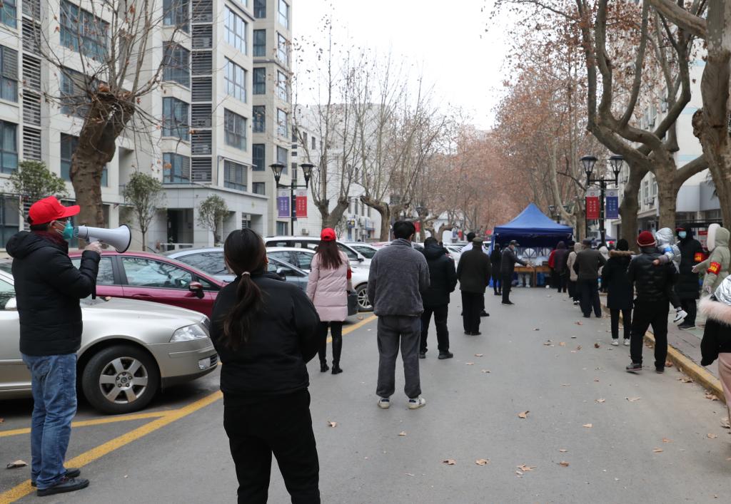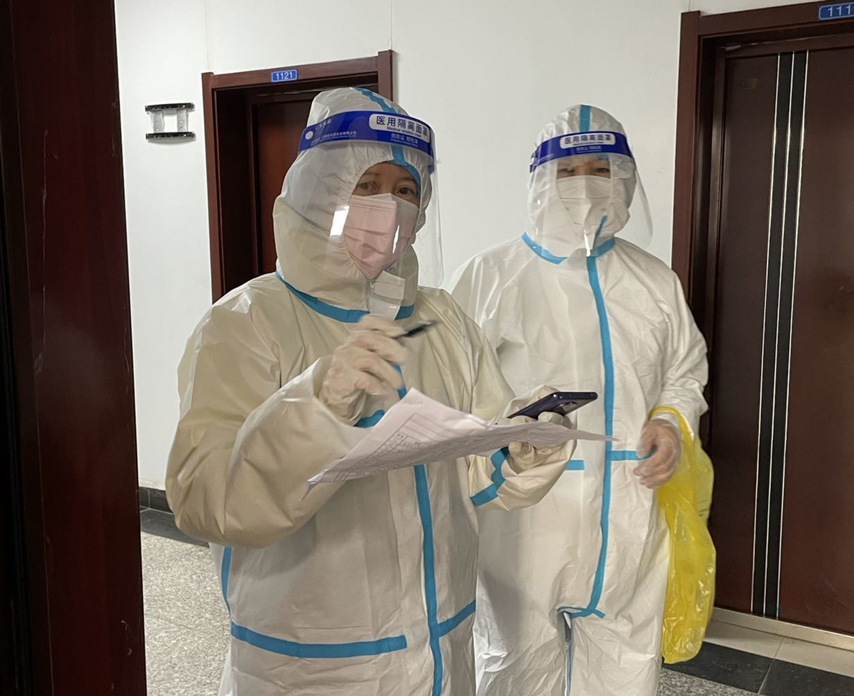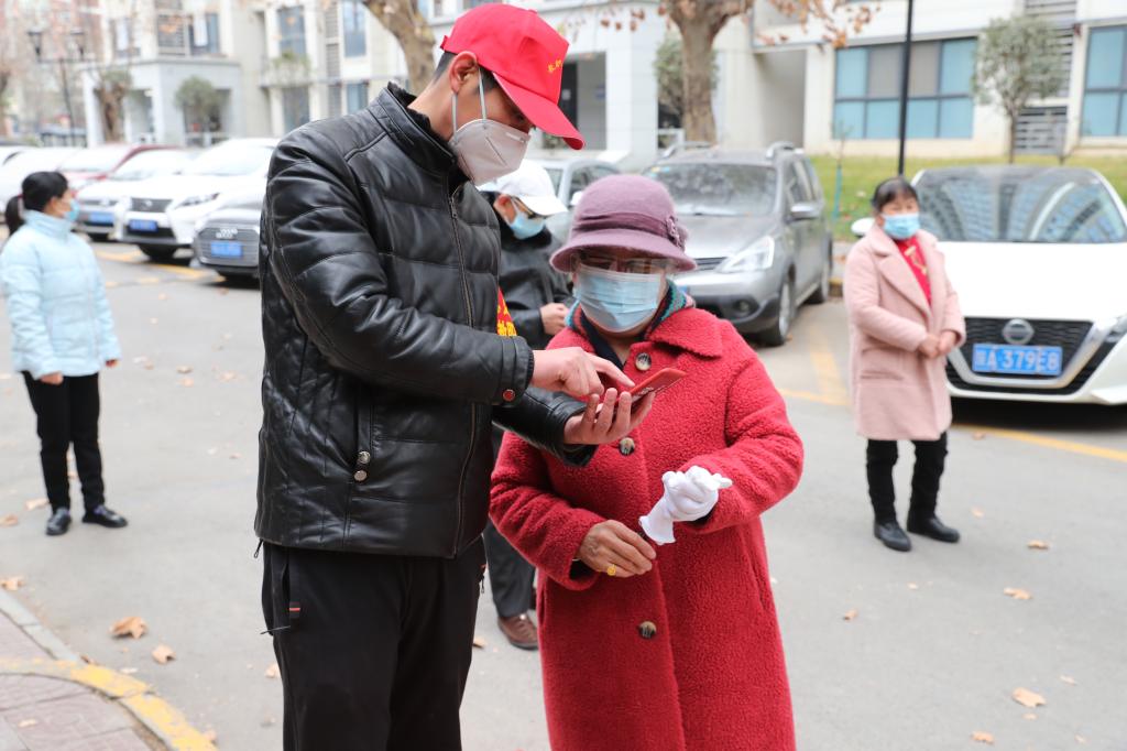东方天际刚刚泛出鱼肚白,第四志愿小分队的“红袖标”们已经忙碌在校园的各栋家属楼。这支志愿者队伍由年龄已经超过50岁的教职工和家属组成,负责学校132户近300人的核酸检测。由于负责区域退休职工较多,楼房没有电梯,吕晓军老师和他的队友们就一个单元接着一个单元爬楼层,挨家挨户敲门通知,确保核酸检测不遗漏一户,不错过一人,确保配合医务人员的每一次检测能顺利完成。无论腿脚风湿病缠身,还是衣服被汗水湿透,只要拿起花名册的那一刻,志愿者们就焕发了青春。