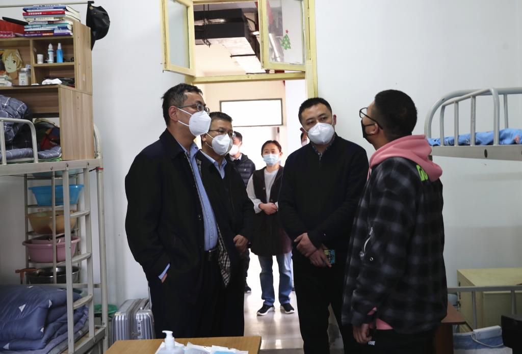28日上午,校领导王建斌、刘谦、韩明军、宁永录、金文,党政办公室、宣传部、纪委综合室、学生工作部(处)、后勤保障处、保卫处、校医院等部门负责人,深入阎良校区就学生返校报到和核酸检测情况作具体了解和指导,慰问现场工作人员,与返校学生亲切交流。校领导强调要把好每个关口,抓实每个细节,严格有序、细致周到地做好疫情防控和学生返校管理工作。
