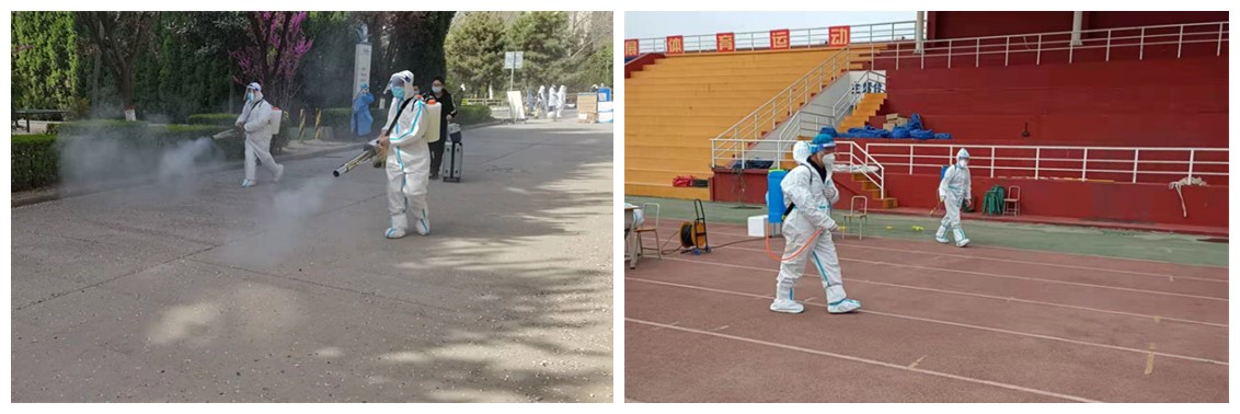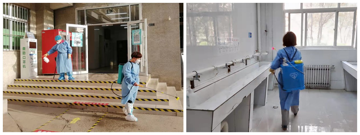 学校建立“青葱侠”点餐平台,为制动管控的七个楼层约900名学生进行个性化供餐服务。餐饮人员克服困难,保证供餐服务正常运行,悉心拟定每日菜谱,保持饭菜荤素搭配、营养均衡,每日送餐2000余份,全力做好在校师生餐饮保障。学生公寓保障人员每日定时对楼宇内公共区域进行消杀,同时为宿舍及卫生间配备消毒用品,凌晨2:00-2:30进行卫生间紫外线消杀。每天对校园内重点区域、垃圾点、办公场所、家属区楼道入户门、楼梯扶手等容易滋生病菌的区域进行清洗和消毒。对医废垃圾和生活垃圾区分存放,建立垃圾清理台账,切实从源头上切断疫情传播途径。开通网上报修平台,及时处理学生宿舍内各类电器、设备故障。