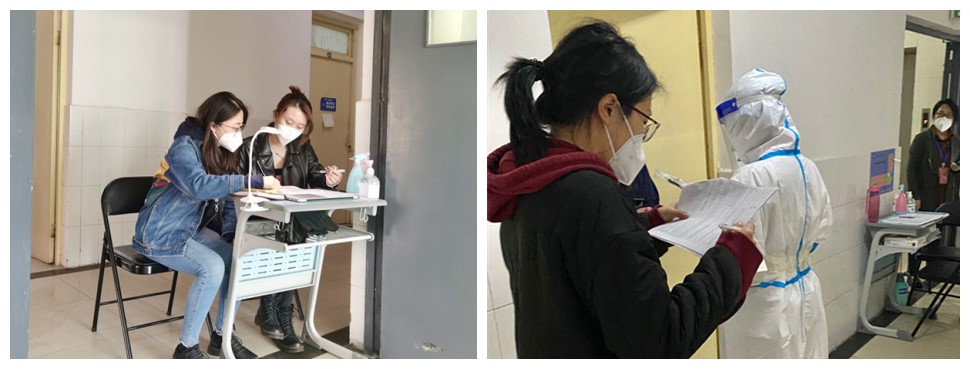 学校严格落实“四早”要求,对两校区所有人员开展一周内三次核酸检测,做到应检尽检,对收到流调信息和制动楼层内的学生进行上门采样。核酸采样严格遵守疫情防控要求,各部门配合默契,组织严密,现场过程井然有序。