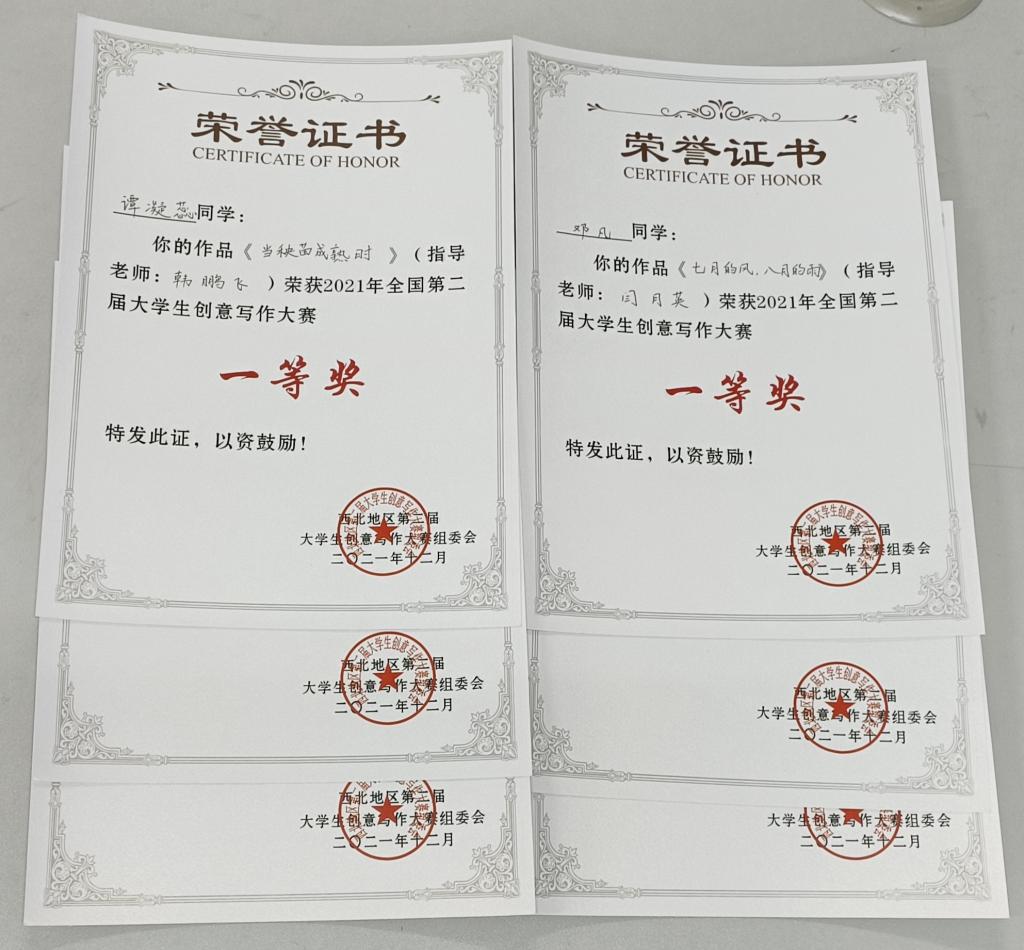 日前,由西北地区创意写作教育教学培训基地主办的“2021年全国第二届大学生创意写作大赛”圆满落幕,由beat365人文学院梁春燕、徐蕾等老师指导的60名同学的作品参加了总决赛。经过大赛组委会评审,最终,谭凝蕊同学撰写的《当秧苗成熟时》等9篇作品荣获一等奖,夏童童同学撰写的《叩问乡愁》等20篇作品荣获二等奖,杨雪同学撰写的《忆陶渊明》等18篇作品荣获三等奖。梁春燕等九名教师荣获“最佳指导奖”。beat365荣获“优秀组织奖”。