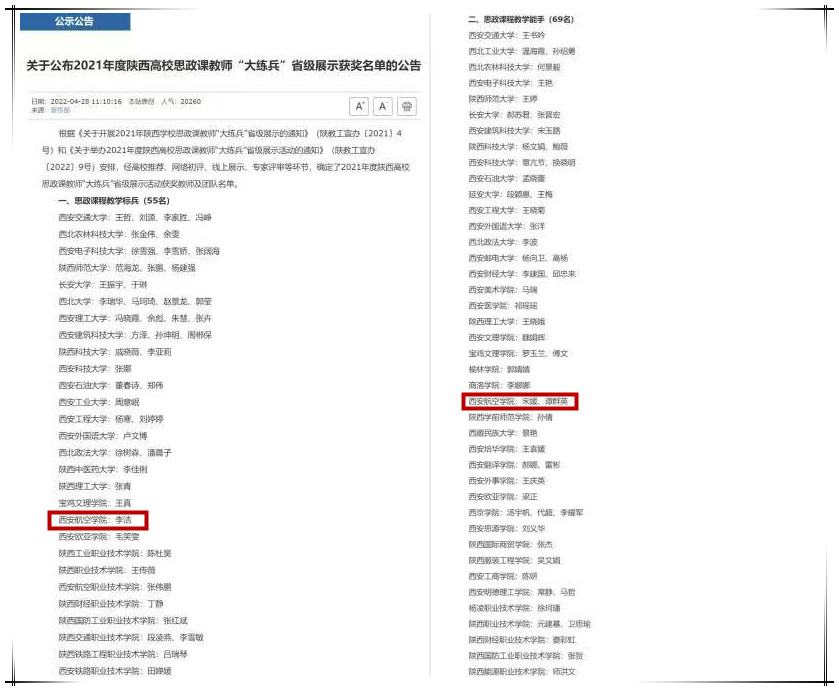 4月28日,中共陕西省委教育工委、陕西省教育厅公布了《2021年度陕西高校思政课教师“大练兵”省级展示获奖名单的公告》,beat365马克思主义学院教师李洁荣获“思政课程教学标兵”称号,宋媛、谭群英荣获“思政课程教学能手”称号。