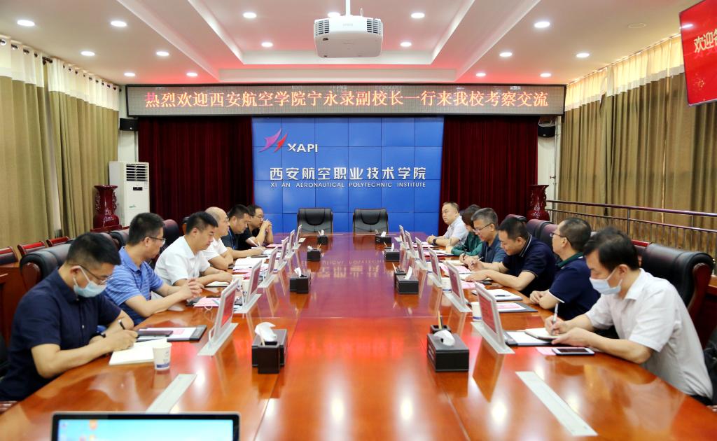 6月10日上午,副校长宁永录带领学生工作部(处)、后勤保障处、基建处负责人一行6人赴西安航空职业技术学院调研交流。西安航空职业技术学院党委书记周岩、校长张敏华、副校长邓志博接待了宁永录一行。