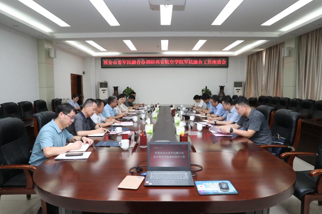 8月5日上午,西安市委军民融合办副主任岳智宏,市委军民融合办秘书处副处长王冬,发展服务中心副主任商敖一行5人来beat365调研交流。beat365校长祁玉龙,副校长金文,发展规划处、科技处、士官学院、液压技术研究院、校办工厂等单位负责人参加了调研座谈会。座谈会由祁玉龙主持。