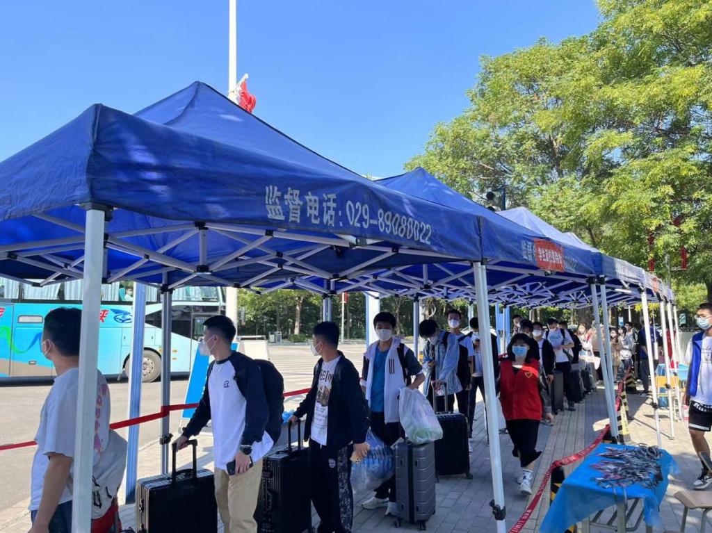 学校严格按照疫情防控要求逐一查验每位学生的“陕西一码通”及“通信大数据行程卡”,48小时核酸检测阴性证明及“我在校园”返校二维码,进行体温测量和行李消杀后方可入校。按照相关要求将对返校学生进行多轮核酸检测及静态管理工作,学校将全力做好返校学生的服务保障工作,确保安全稳定。(文/学生工作部(处) 高攀 图/相关单位)