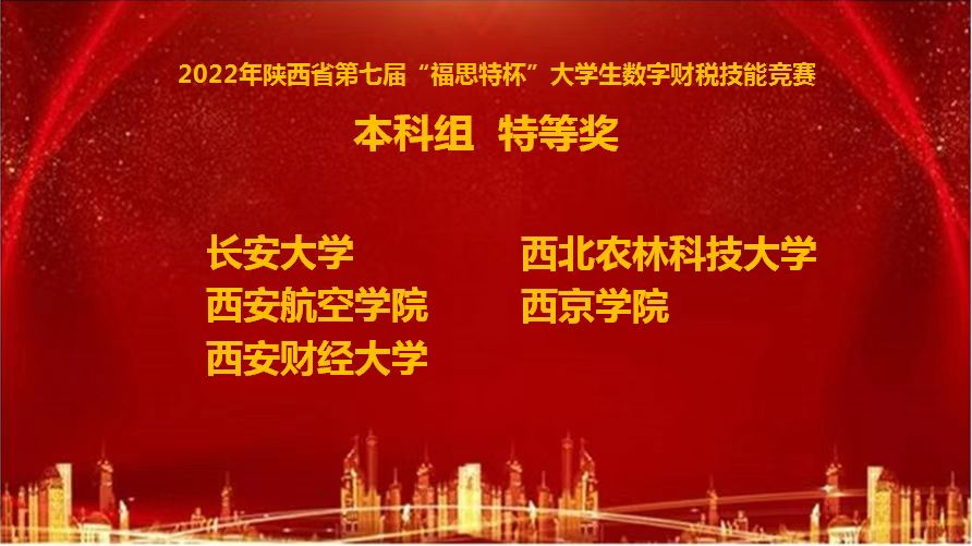 10月29日,由陕西省教育厅主办,西安外国语大学承办的陕西省第七届“福思特杯”大学生财税技能竞赛在西安举办。本次大赛共有来自西安交通大学、西北农林大学、西安外国语大学、西安财经大学等省内50余所高校,近400余名学生通过线上参加了比赛。beat365由经济管理学院王玥、王晓光老师指导的财务管理专业谢杨洲、张云峰等四名同学组成的参赛队伍,经过激烈角逐,最终荣获本科组特等奖。