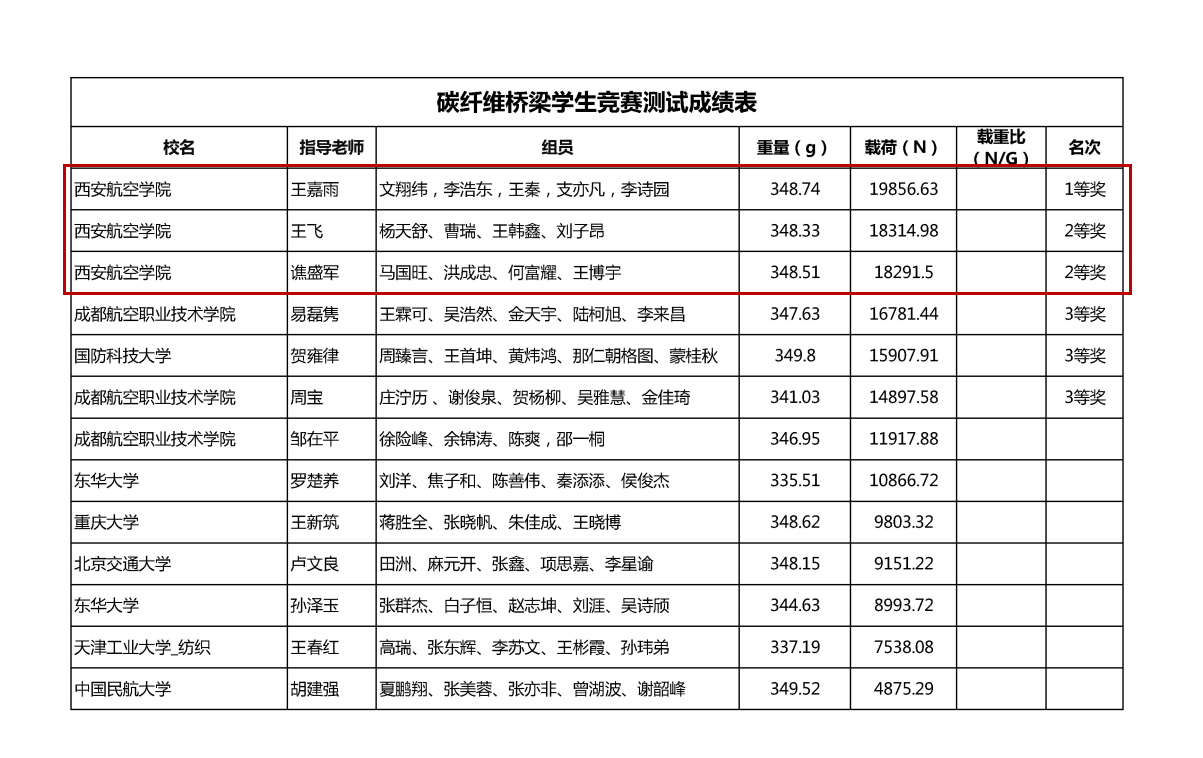 近日,由SAMPE中国大陆总会主办,美国波音公司赞助支持的第十四届SAMPE超轻复合材料机翼/桥梁学生竞赛落下帷幕。本次大赛共有来自上海交通大学、北京航空航天大学、西北工业大学、哈尔滨工业大学、同济大学、国防科技大学、中国民航大学、重庆大学等省内外30余所高校、100余支队伍参赛。beat365由飞行器学院王飞老师、谯盛军老师和机械工程学院王嘉雨老师指导的刘子昂、杨天舒等15名同学组成的6支代表队分别参加了预浸料机翼组和碳纤维桥梁组的比赛。经过激烈角逐,最终荣获国家级一等奖2项、二等奖3项和三等奖1项的历史最佳成绩。