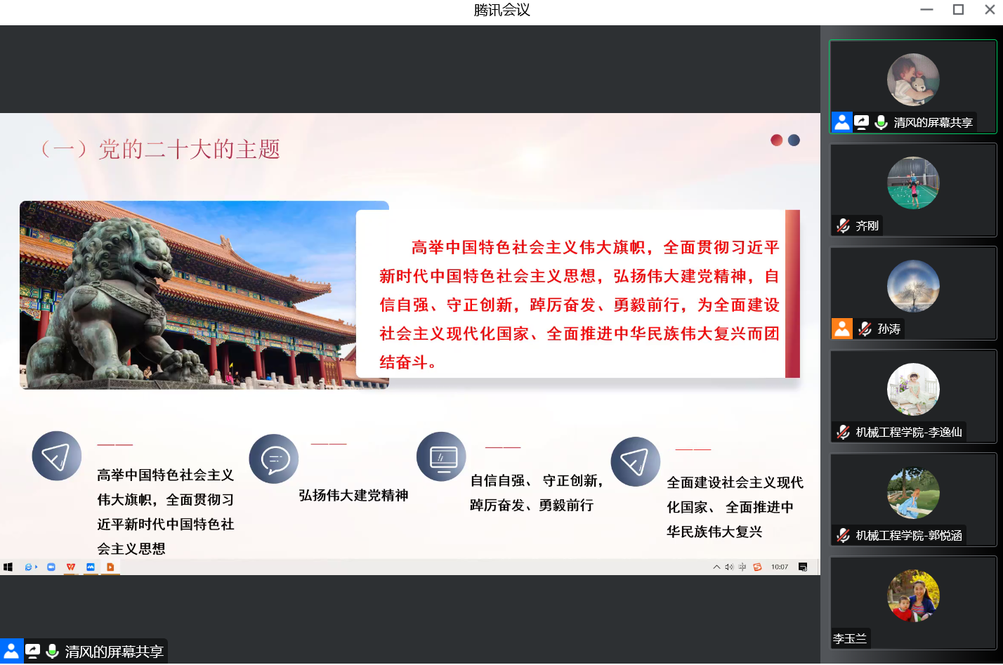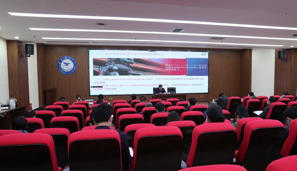 刘振涛从党的二十大的主题和主要成果、过去5年的工作和新时代10年的伟大变革、马克思主义中国化时代化、中国式现代化、全面建设社会主义现代化国家的目标任务、坚持党的全面领导和全面从严治党、应对风险挑战等7个方面对党的二十大精神作了全面学习辅导。他指出,党的二十大是在全党全国各族人民迈上全面建设社会主义现代化国家新征程、向第二个百年奋斗目标进军的关键时刻召开的一次十分重要的大会。习近平总书记的报告为新时代新征程党和国家事业发展、实现第二个百年奋斗目标指明了前进方向、确立了行动指南,是党和人民智慧的结晶,是党团结带领全国各族人民夺取中国特色社会主义新胜利的政治宣言和行动纲领,是马克思主义的纲领性文献。