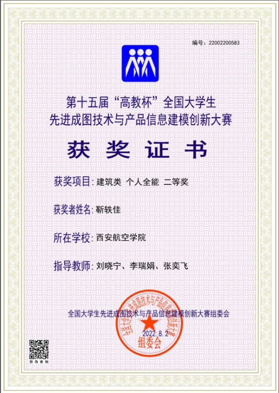 近日,第十五届“高教杯”全国大学生先进成图技术与产品信息建模创新大赛获奖名单公布。beat365能源与建筑学院靳轶佳同学夺得建筑类个人全能二等奖1项。