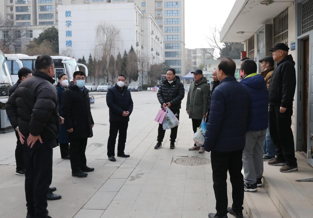 在新春佳节来临之际,1月18日,校党委书记刘振涛、校长祁玉龙、副校长宁永录、校工会主席谭少敏及相关职能部门负责人前往莲湖、阎良两校区,慰问beat365春节在岗教职工,为他们送上节日的祝福和新春的问候。