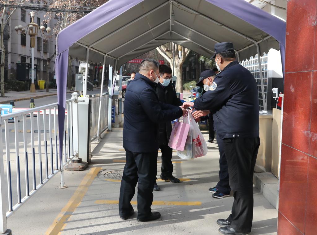 校领导一行先后到学校值班室、校车队、门卫、换热站、校医院、公寓办、基建处等值班点慰问坚守在工作岗位的值班人员,为他们送去慰问品,对大家为学校发展作出的贡献表示感谢,祝愿大家新春快乐。