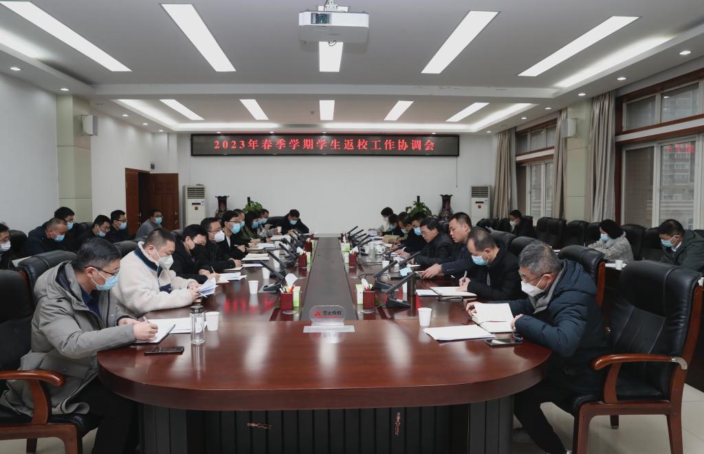 2月13日上午,学校在莲湖校区第三会议室召开2023年春季学期学生返校工作协调会,安排部署学校春季学期开学和学生返校相关工作。校长祁玉龙、副校长宋文学,学生工作部(处)、后勤保障处、校医院、保卫处等部门负责人,各二级学院党总支书记、副书记参加会议。会议由宋文学主持。