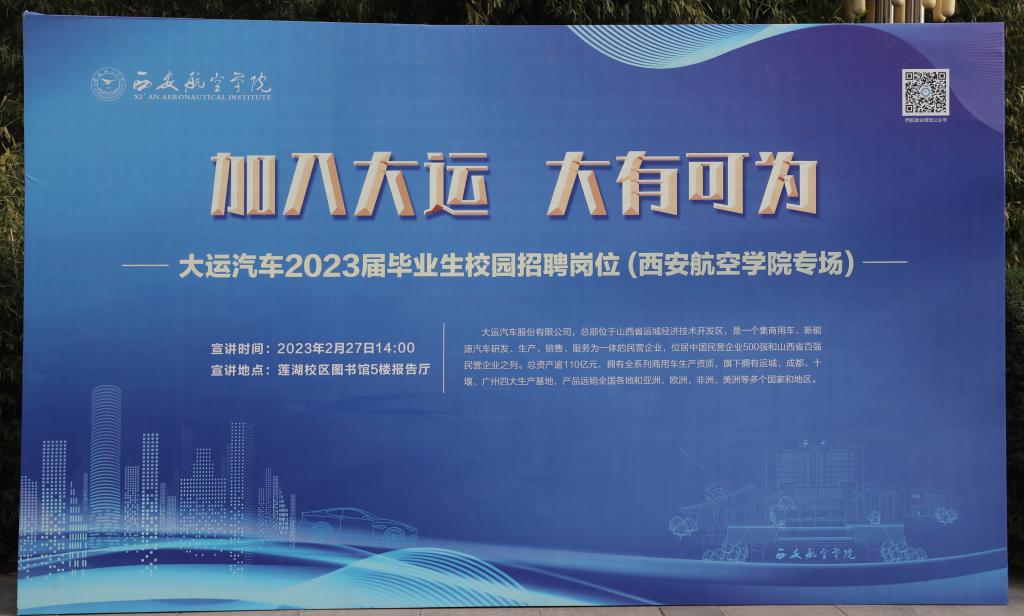 为积极响应教育部、省教育厅关于开展2023届毕业生春季促就业攻坚行动,抢抓春招关键期,全力攻坚促就业。2月27日至3月5日,学校特邀山西大运汽车集团来校举办专场招聘会,大运汽车行政副总经理郭进峰带领企业相关部门负责人来校宣讲招聘。