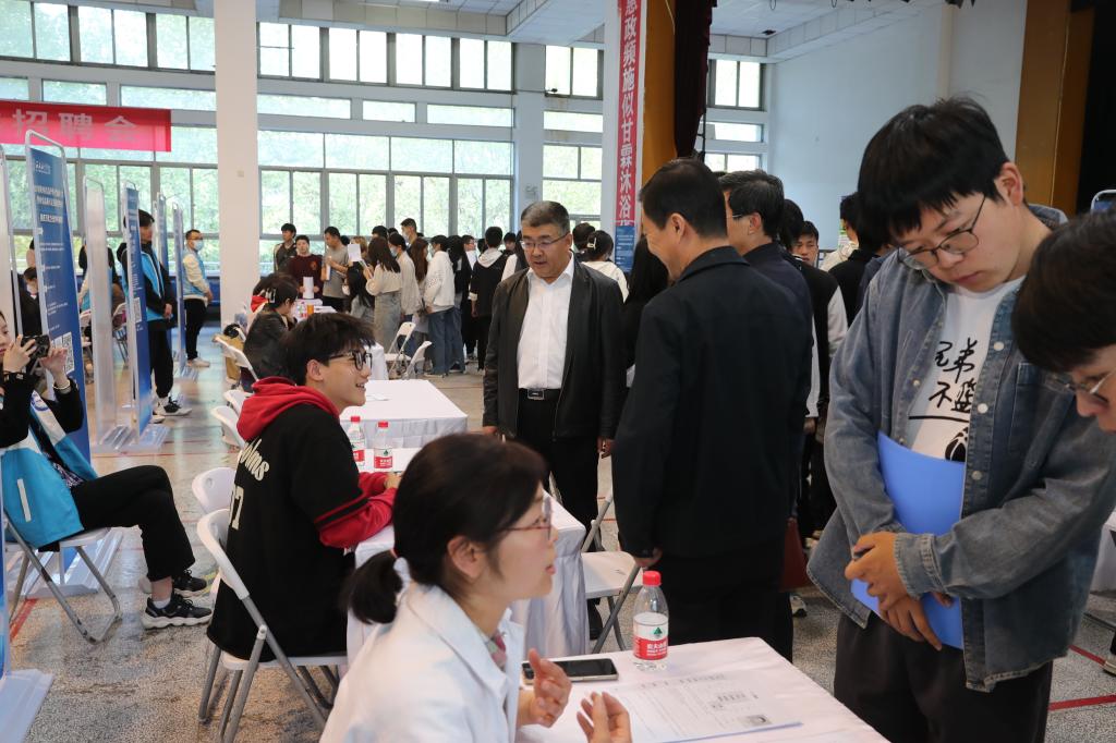 校长祁玉龙、副校宋文学、党政办公室主任李永刚等亲临招聘会现场,看望前来参会的用人单位代表和毕业生,了解用人单位今年的需求计划和招聘情况,助力毕业生好就业、就好业。祁玉龙强调,就业是学生大事,也是学校大事,全体教职员工与领导干部要深入学生群体中,了解学生就业需求,引导学生树立正确的就业观,精准帮扶困难学生就好业,用心用情用力做好毕业生就业工作,确保就业大局稳定。招聘现场气氛热烈,毕业生依据自己所学专业,结合企业实际需求积极应聘,部分企业召开了宣讲会,与学生互动交流,现场面试。