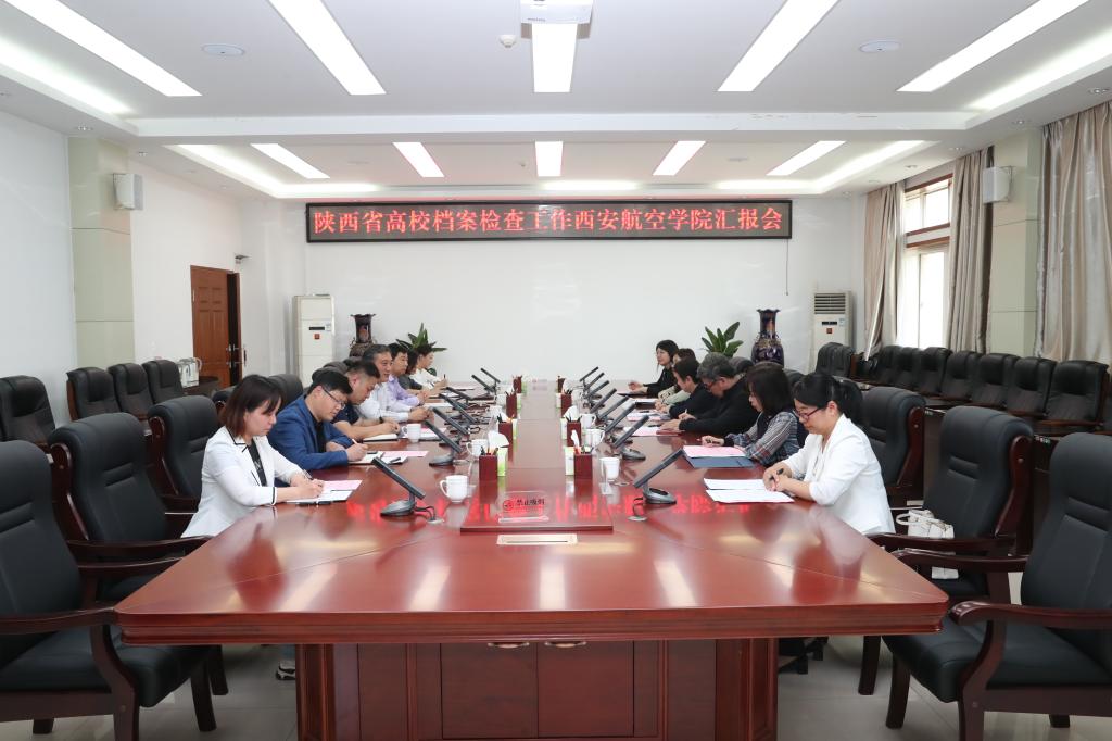 4月19日下午,陕西省教育厅档案工作检查组一行来beat365进行档案工作专项检查。检查组由省教育厅调研员、省高校系统档案学会副理事长王瑛,省高校系统档案学会理事长吴连书、西安工业大学档案馆副馆长李宁等6人组成。校党委副书记韩明军,党政办公室、人事处、学生工作部(处)等部门负责人及档案室相关人员参加了汇报会。会议由党政办公室主任李永刚主持。