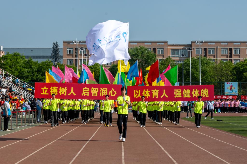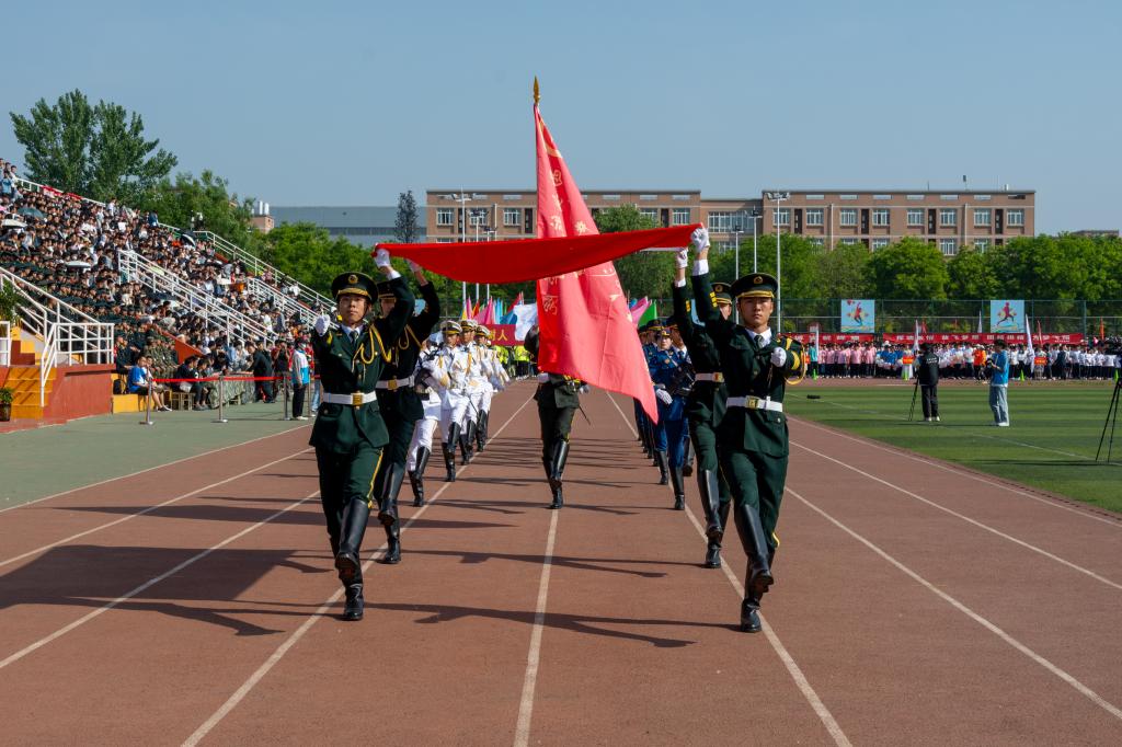 校长祁玉龙致开幕辞。他首先代表学校向运动会的开幕致以热烈祝贺,向为本次运动会付出辛勤劳动的教职员工和同学们表示衷心的感谢。他表示,近年来,学校坚持以体育心、以体育人,把体育强校作为推进高质量发展、丰富师生精神文化生活的重要举措,作为强健师生体魄、涵养奋斗精神、激发爱校荣校情怀的有效途径,在提高体育教学和竞技水平、开展群众性体育活动等方面取得了长足进步。他希望全体运动员遵守比赛规则,服从裁判,奋力拼搏,赛出水平,赛出风格,尽情体验“更快、更高、更强”的奥运精神;全体裁判员在赛场上客观公正,严格执法;希望全体工作人员积极工作,热情服务,大家共同把本届运动会办成一场精彩的盛会、平安的盛会、和谐的盛会。