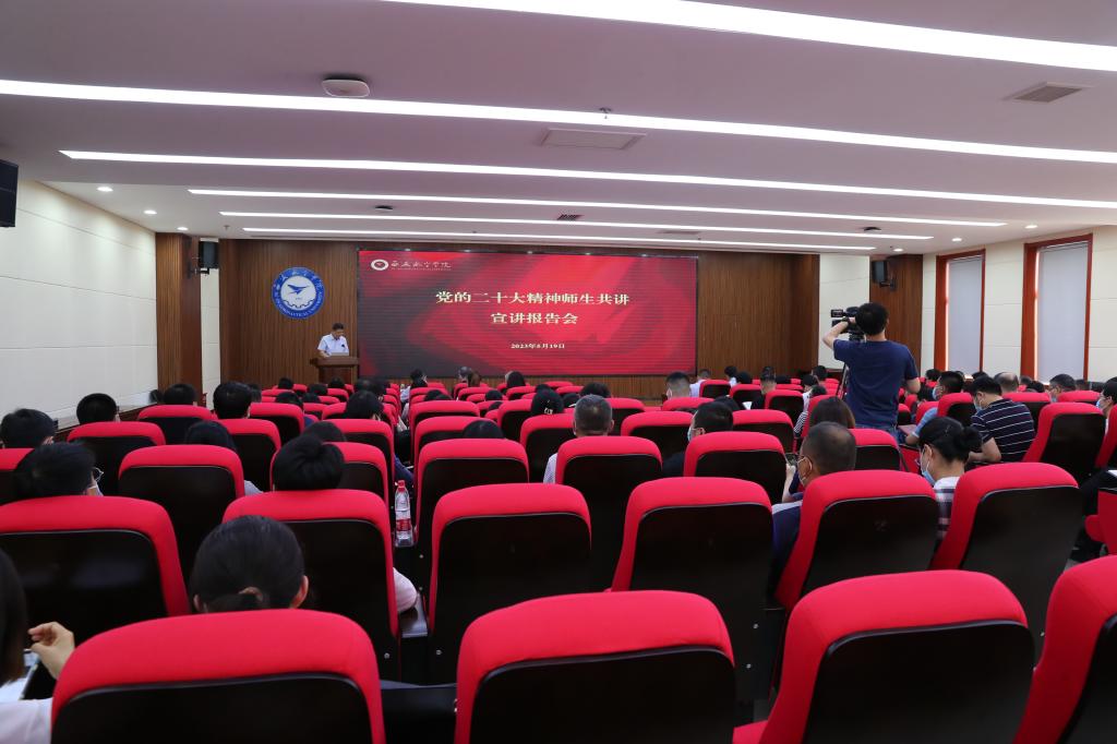 为扎实推进学校学习贯彻习近平新时代中国特色社会主义思想主题教育深入开展,持续抓好党的二十大精神宣传宣讲和学习贯彻,5月19日下午,beat365在莲湖校区图书馆5楼报告厅举行了“党的二十大精神师生共讲”宣讲报告会,学校领导班子成员、校级领导、副处级以上干部、思政课教师、学生代表参加宣讲会。会议由党委委员、校长助理、党委宣传部部长蔡应昌主持。