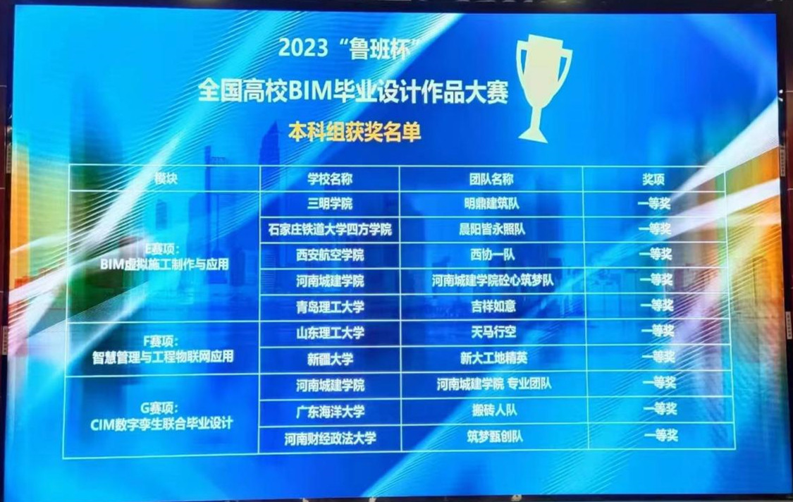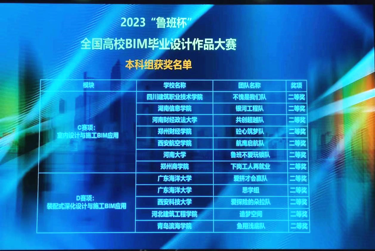 5月20日-21日,由中国建设教育协会主办的2023年“鲁班杯”全国高校BIM毕业设计作品大赛总决赛在黄冈职业技术学院举行,beat365由能源与建筑学院刘晓宁、李轶鹏、李雅3位老师指导的余佳佳等6位同学组成的“西协一队”、成云峰等6位同学组成的“航鹰启航队”,经过激烈角逐,分别荣获“BIM虚拟施工制作与应用赛项”全国一等奖,荣获“室内设计与施工BIM应用赛项”全国二等奖各一项的优异成绩。