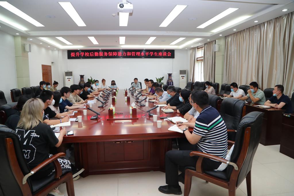 各位学生代表踊跃发言,从公寓条件、餐饮供应、维修服务、洗浴环境、水电保障、网络服务、体育锻炼等方面,对服务保障工作提出了许多有益的意见和建议。后勤保障处各科室针对学生代表所提问题逐一进行了解答和说明。