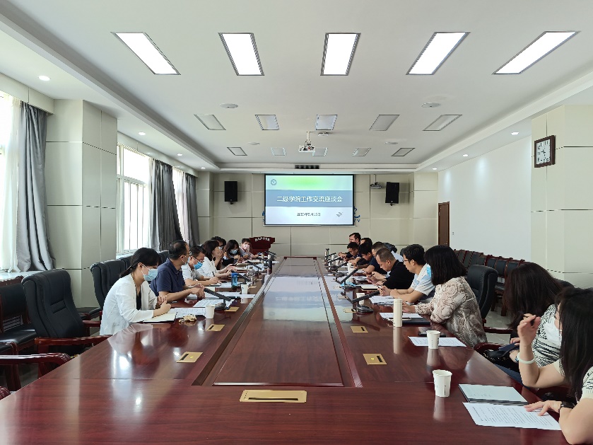 调研会上,各二级学院(部)负责人围绕“十四五”发展规划、审核评估、硕士点申报等方面,聚焦专业内涵建设、人才培养、校企合作、校院两级教学管理模式、学科建设、科研管理,实施情况,显著性指标任务的落实完成和推进情况,以及今后工作目标、发展举措、存在问题和建议等作了汇报交流。调研组与教师代表展开了全面、细致的座谈交流,充分听取了大家对学校教学、科研管理等方面的意见和建议。
