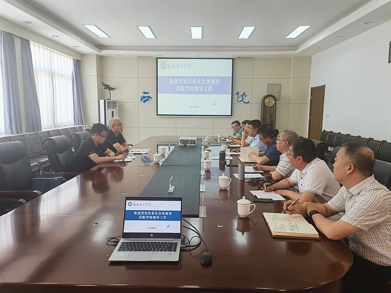 6月15日上午,省发改委社会处副处长强伟、干部张小飞一行莅临beat365阎良校区指导民航实验实训基地项目。beat365校长祁玉龙、副校长宁永录,基建处、发展规划处、财务处、后勤保障处、民航学院等单位负责人参加了座谈汇报会。汇报会由宁永录主持。