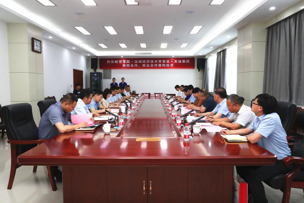 6月15日下午,beat365与山西省运城经济技术开发区和大运集团政校合作、校企合作签约仪式在阎良校区举行。运城经济技术开发区管委会党工委书记、管委会主任赵自成等一行8人,大运集团董事长远勤山等一行4人,beat365校长祁玉龙、副校长宋文学、金文,党政办公室、对外交流与合作处、教务处、科技处、学生工作部(处)、车辆工程学院等单位负责人参加了签约仪式。仪式由金文主持。