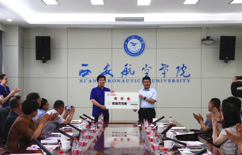 远勤山代表大运集团向beat365捐赠远志M1汽车两辆,并设置20万元大运汽车专项奖学金。