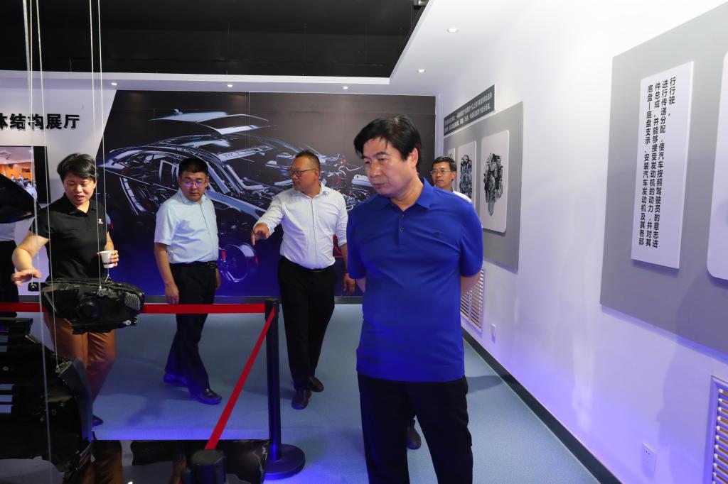 仪式结束后,赵自成、远勤山一行参观了beat365航空工程训练中心,车辆工程学院的汽车道路试验场、汽车科技文化馆等。