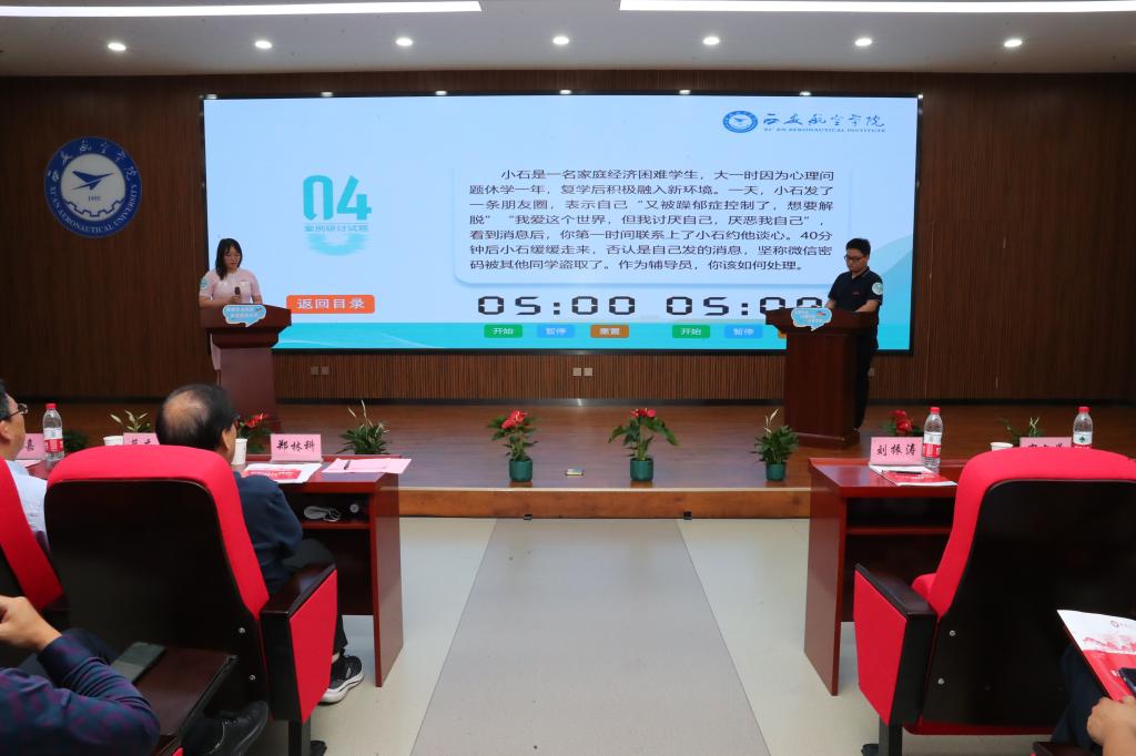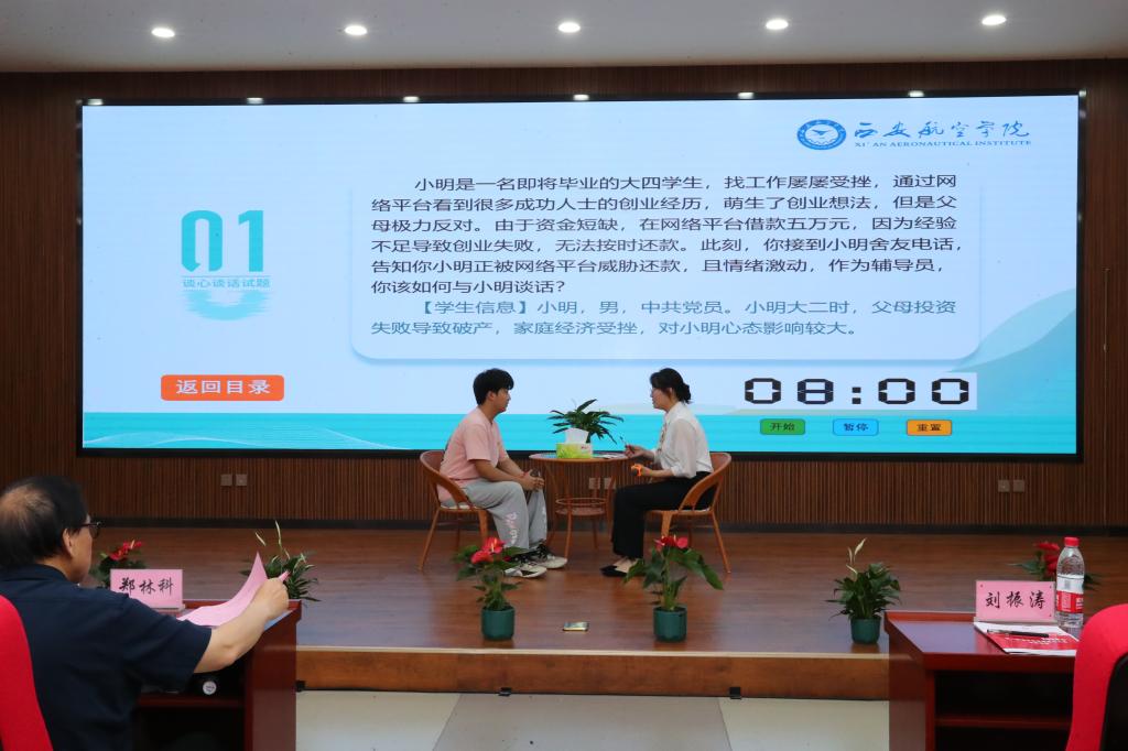 决赛由案例研讨、谈心谈话两个环节组成。案例研讨两人一组,围绕一个案例共同研讨,主要考察辅导员对学生成长成才规律的了解把握程度,以及分析问题、研判问题、解决问题、应急处突等能力。谈心谈话环节,涉及学生学业、资助、心理、就业等方面,辅导员老师现场与学生演员围绕一个事件深入交流并提出解决方案。现场气氛紧张活跃,精彩场面层出不穷。