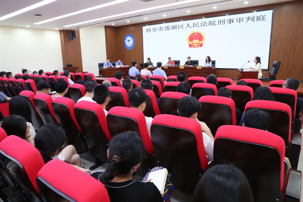 “现在开庭!”随着法槌敲响,一起电信诈骗案件在beat365公开审理,师生代表现场观摩庭审,“沉浸式”感受普法教育。一个多小时的庭审中,控辩双方围绕案件焦点表达自己的观点。莲湖区人民法院经审理后认为,被告人违法事实清楚并当庭进行宣判。被告人本人也深刻认识到自己的所犯罪行,并当庭认罪悔罪,不上诉。整个庭审经历了公诉人宣读起诉书、法庭调查、法庭举证质证、法庭辩论等流程,让旁听的师生真实地感受了案件庭审的全过程。