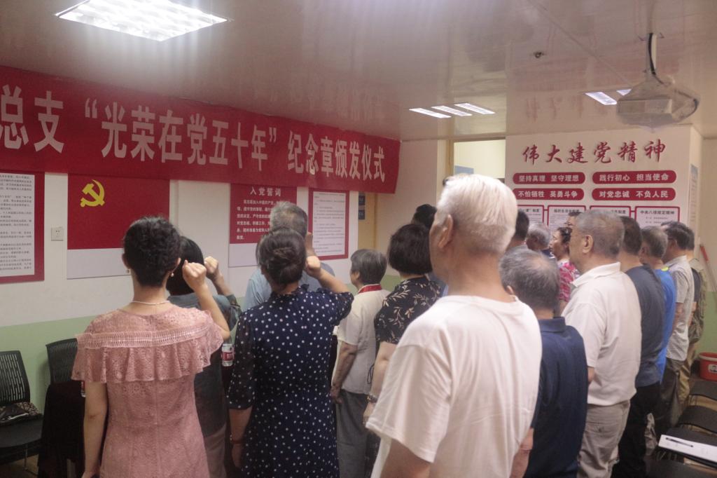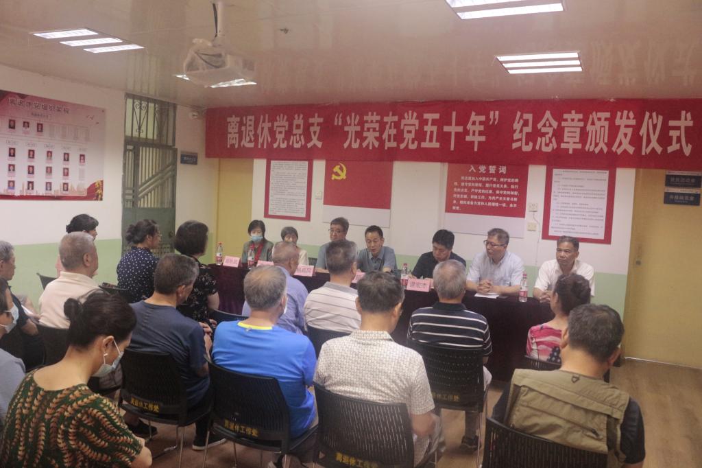 在中国共产党成立102周年来临之际,6月30日上午,学校在离退休党员活动室为党龄达到50年老党员举办“光荣在党五十年”纪念章颁发仪式。学校党委副书记张昭、组织部正处级组织员逯红杰、离退休党总支书记邓北川、离退休工作处处长史正元及离退休党员代表等30余人参加颁发仪式。仪式由史正元主持。