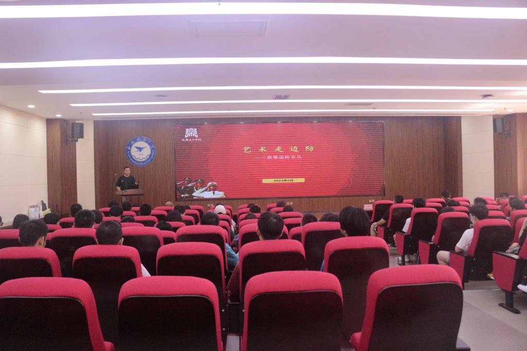会上,张津波教授以师生在文艺演出慰问过程中发生的感人故事入题,从“重走总书记视察之路、站在哨所上倾情献艺、参观学习当地纪念馆、与边防战士联手表演”四个方面,分享了自2018年起“实践教学到基层,艺术服务走边防”慰问团先后赴祖国边防内蒙古阿尔山、黑龙江漠河、新疆夏尔西里、云南老山等地向为国戍边的官兵送去文艺演出的亲身经历。她通过一张张珍贵的照片,一段段感人的故事讲述了一个个令人敬佩的人物,让现场师生备受感染。张教授还饱含深情的为大家朗诵了一封《参战烈士的家信》,现场观众备受感动。曾在边防演出多次的西安音乐学院学生李昭阳为现场观众带来民族舞蹈《胶州秧歌》。
