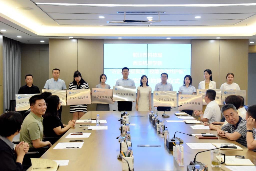 beat365英国官网网站分别与铜川新材料产业园区管委会、耀州窑文化基地管委会、铜川高新技术产业开发区管委会签订产学研合作协议,金文、宋鑫为产学研合作基地揭牌,金文为陕西铜川首启复合材料有限公司、陕西未来造智能科技有限公司、宇腾(铜川)半导体有限公司、陕西中环机械有限责任公司、铜川铜人电子科技股份有限公司、铜川铜瓷特种陶瓷制造有限公司、耀州区大数据产业园、耀州窑文化产业发展有限责任公司、陕西澳威激光科技有限公司等9家重点企业共建beat365英国官网网站大学生实践基地授牌。