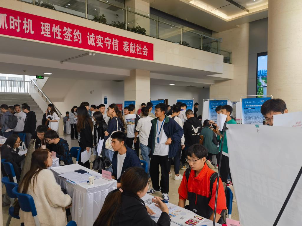 招聘会现场气氛热烈、秩序井然,毕业生热情高涨,积极投递简历,了解企业发展前景和岗位需求,与企业招聘人员深入交流。副校长宁永录与泰州市人力资源和社会保障局钱筱湄局长、泰州市人才服务中心主任陈文根、靖江市人力资源和社会保障局书记朱建忠就强化政校企合作进行了座谈。多家企业在招聘会上与学生初步达成了就业意向。