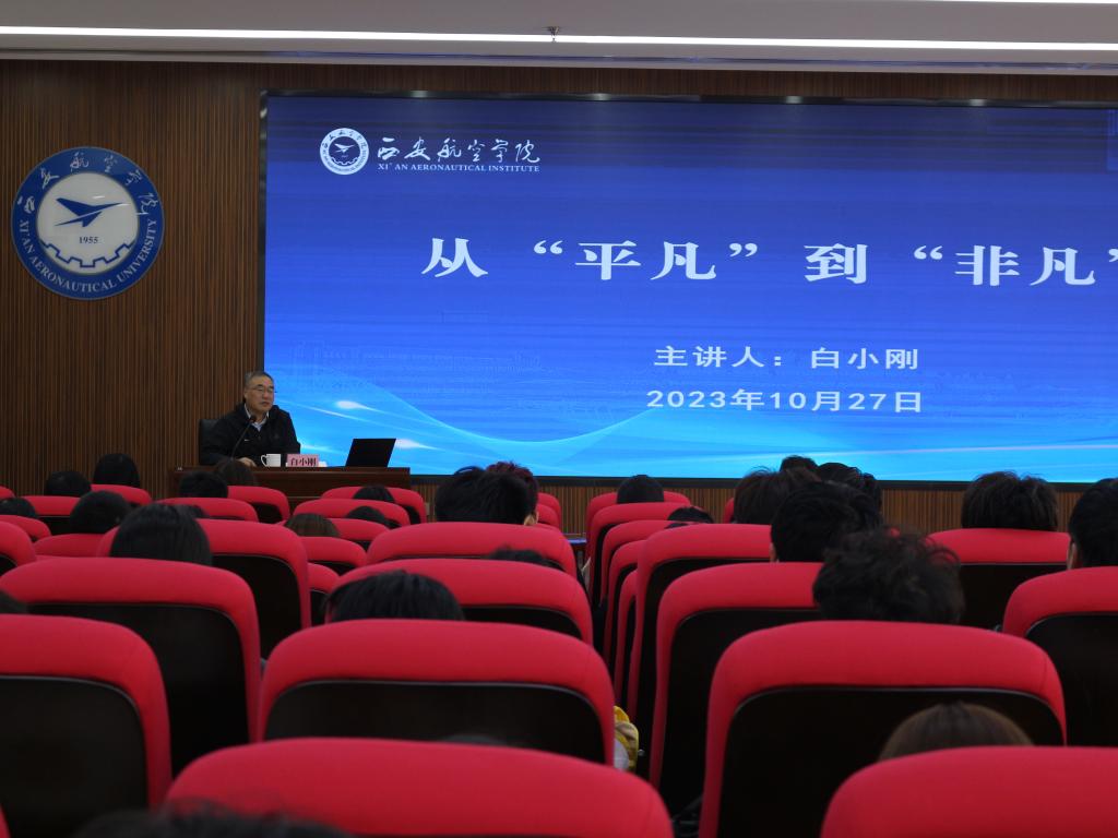 10月27日下午,由教师工作部、学生工作部(处)、人文与外国语学院主办的“从平凡到非凡”专题讲座在莲湖校区图书馆报告厅举行。讲座特邀原中航通用飞机有限责任公司董事长党委书记、beat365客座教授白小刚担任主讲,全校百余名教师及学生代表参加。讲座由校党委副书记、纪委书记曹渊主持。