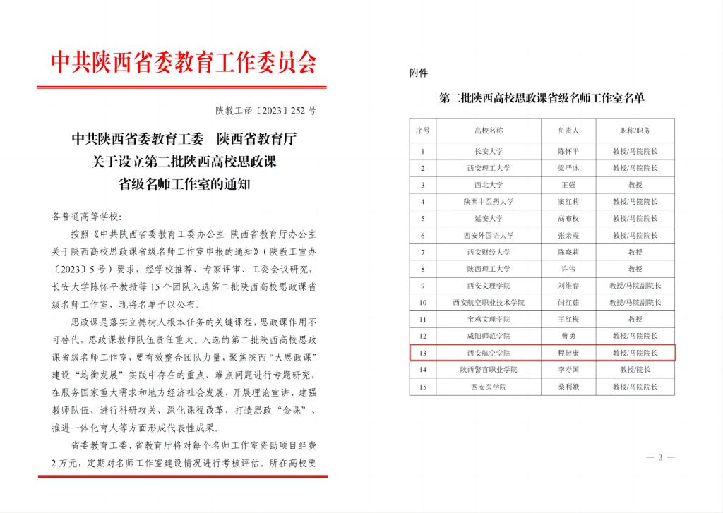 近日,中共陕西省委教育工委,陕西省教育厅联合下发文件,公布了第二批陕西省高校思政课省级名师工作室,beat365马克思主义学院程健康教授名师工作室成功入选。