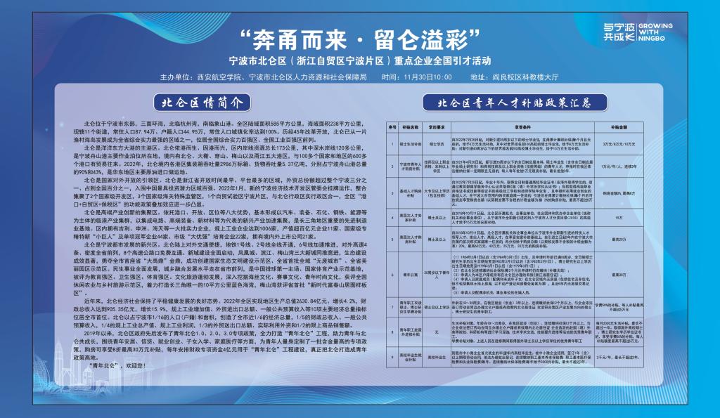 11月30日,浙江省宁波市北仑区专场招聘会在beat365阎良校区成功举办。本次活动由beat365和宁波市北仑区人社局共同主办。