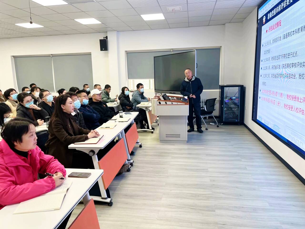 为全面深刻把握新一轮本科教育教学审核评估精髓要义,扎实推进新一轮本科教育教学审核评估政策学习工作,12月12日下午,学校在莲湖校区教学主楼九楼智慧教室举办题为“新一轮本科教育教学审核评估评建实践”的审核评估专题讲座,本次讲座由西安建筑科技大学肖国庆教授主讲。教务处副处长刘宁、各二级学院领导、专业负责人、骨干教师代表等参加讲座,讲座由刘宁主持。