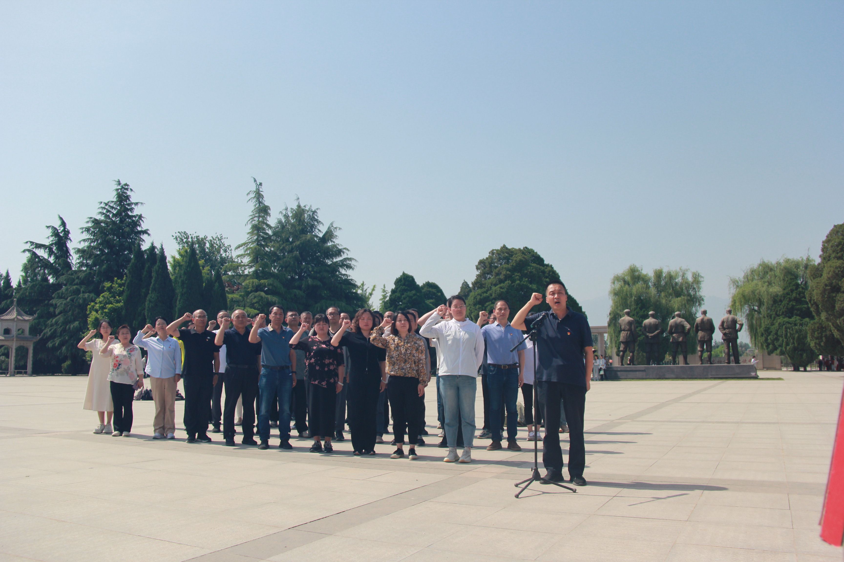在肃穆的“扶眉战役烈士纪念碑”前,全体党员整齐列队、静默肃立,向英勇献身的烈士们默哀,向革命先驱们鞠躬致敬。校办工厂党支部书记牛高峰、军士学院党总支书记李庆为革命先烈敬献花篮,寄托对人民英雄的深切缅怀和崇高敬意。在图书馆直属党支部书记赵建涛的带领下,全体党员紧握右拳,在党旗下重温入党誓词,牢记初心使命。