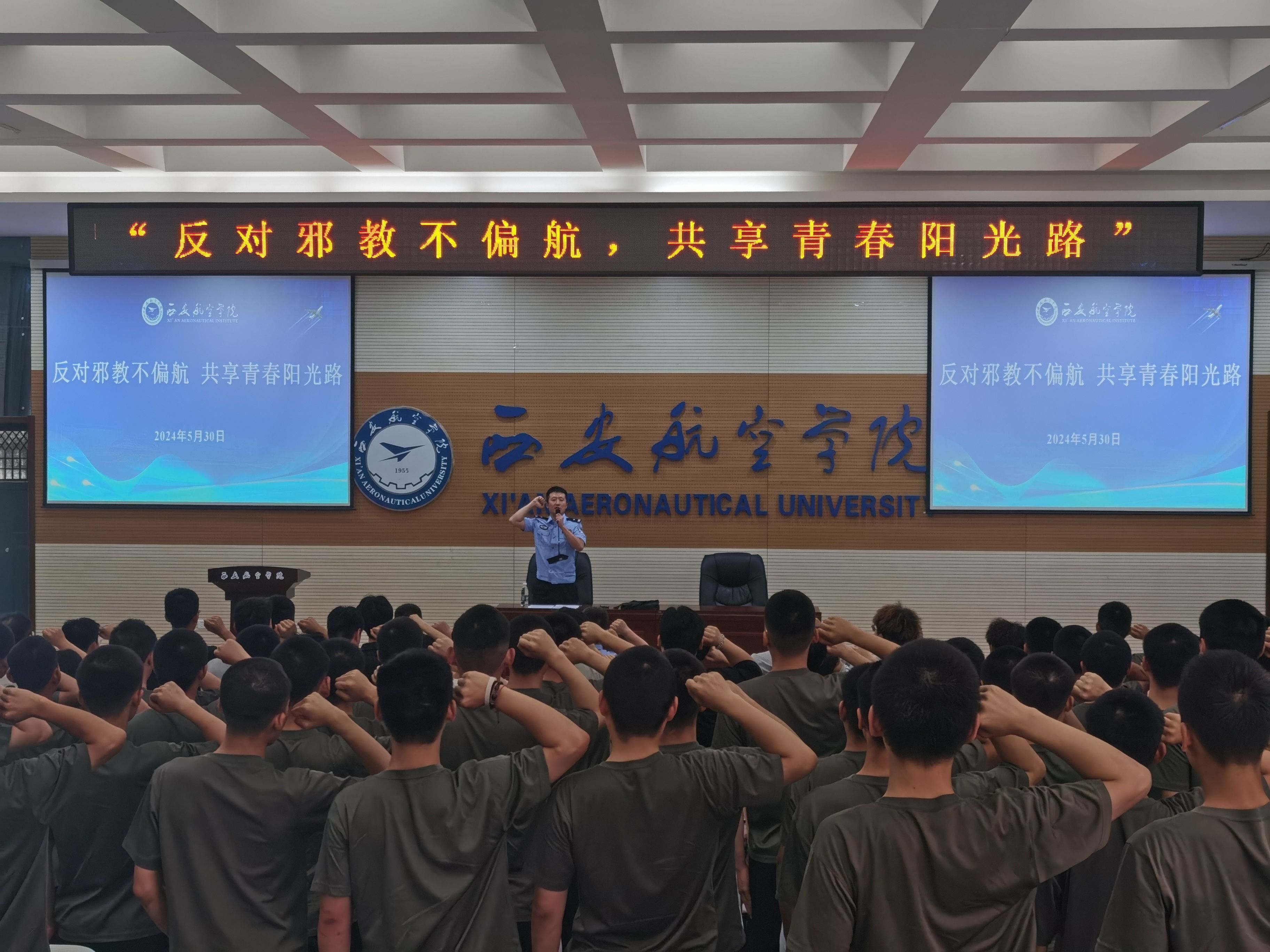 阎良分局警官在报告厅为beat365学生做了反邪教专题宣讲报告会,组织学生现场观看了反邪教警示教育影片,动员学生关注“中国反邪教”官方公众号,并进行“对邪教说不”网上签名活动和现场宣誓。
