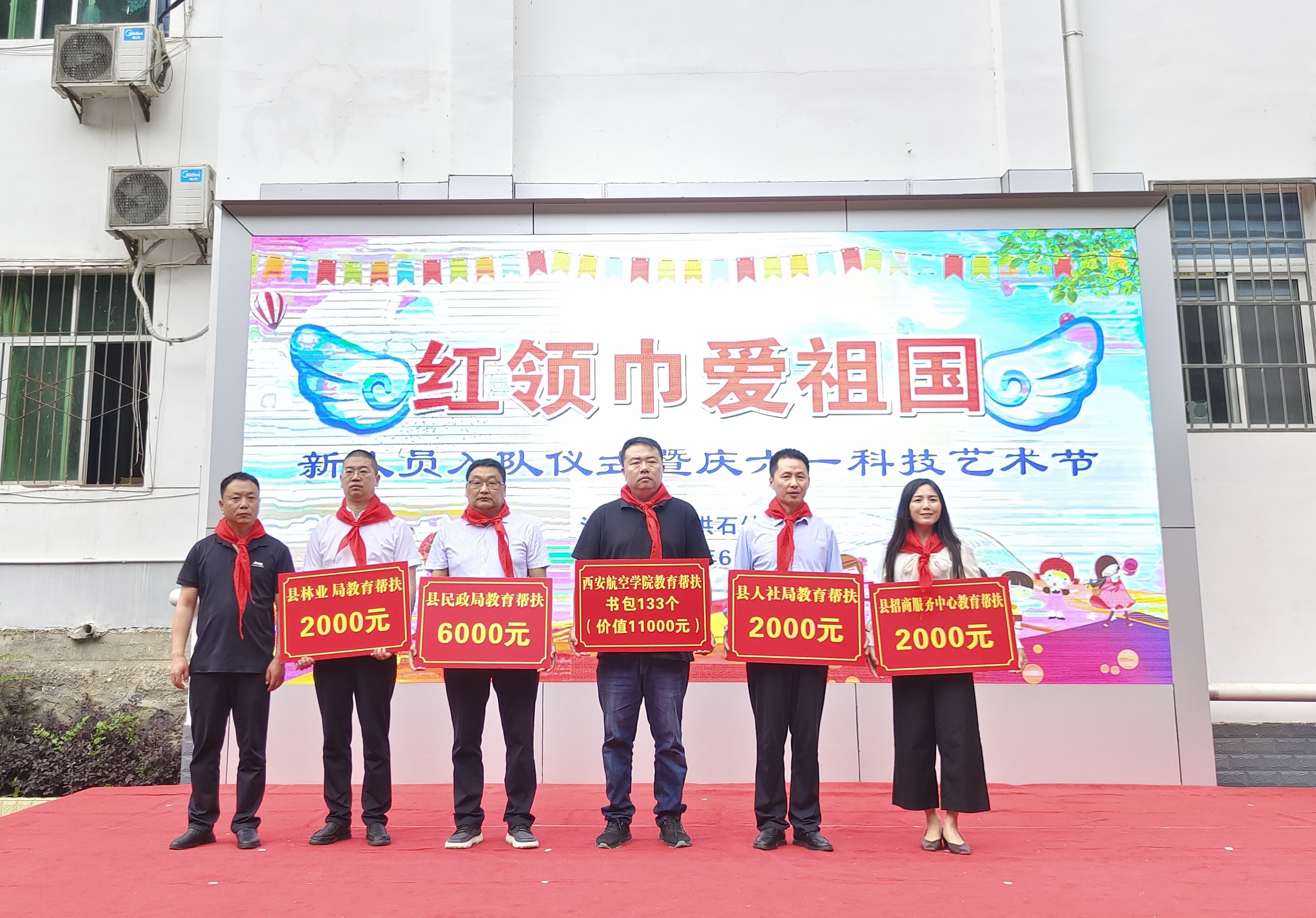 活动现场,各帮扶单位向洪石小学及幼儿园捐赠了共计2万多元书包、篮球等文体用品及帮扶资金。活动表彰了一批“幼儿园好宝宝”、“三好学生”、优秀班干部、优秀少先队员等。大家共同观看了小朋友精心准备的舞蹈、合唱、朗诵、小品等丰富多彩的节目。