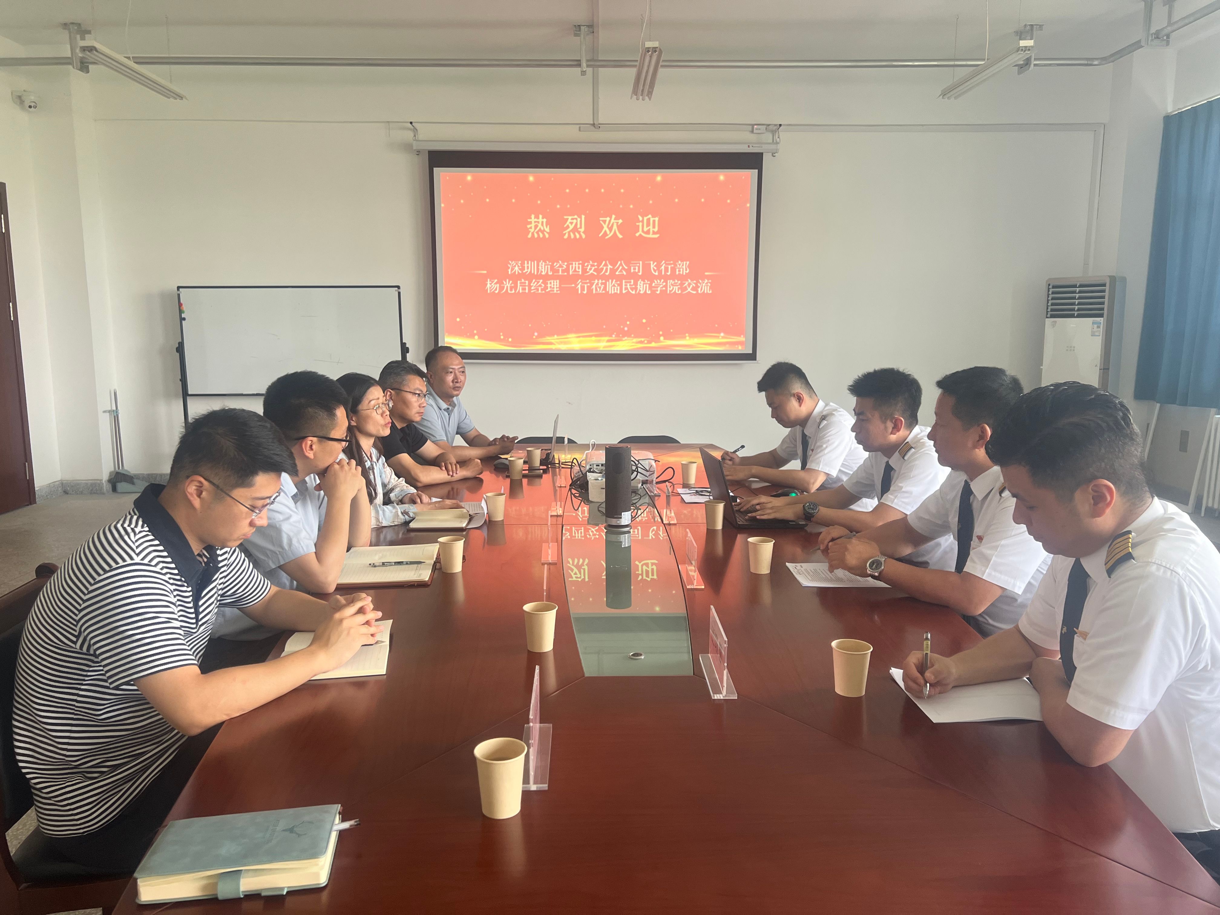 6月11日,深圳航空有限责任公司西安分公司飞行部经理杨光启一行4人来校开展座谈交流,民航学院党总支书记丁琦,学生工作部副处长刘佳,以及民航学院教师、学生代表等参加座谈,会议由丁琦主持。