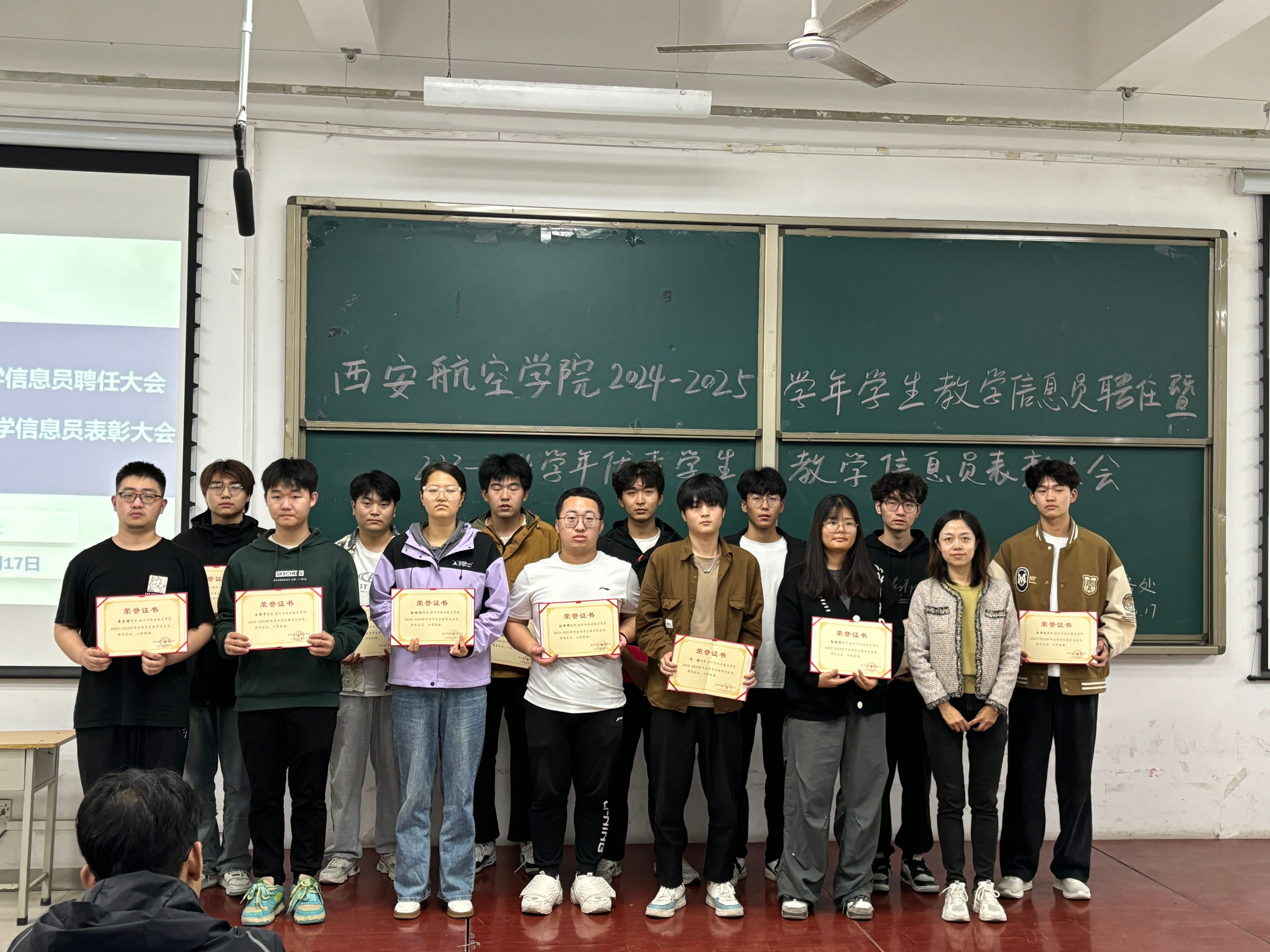 会议宣读了《关于表彰beat365英国官网网站2023-2024学年优秀学生教学信息员的通知》和《关于聘任2024-2025学年学生教学信息员的通知》,熊晨阳等34名学生被评选为优秀学生教学信息员,范凯峰等392名学生被聘为第八届学生教学信息员,屈倩为学生教学信息员颁发荣誉证书和聘书。