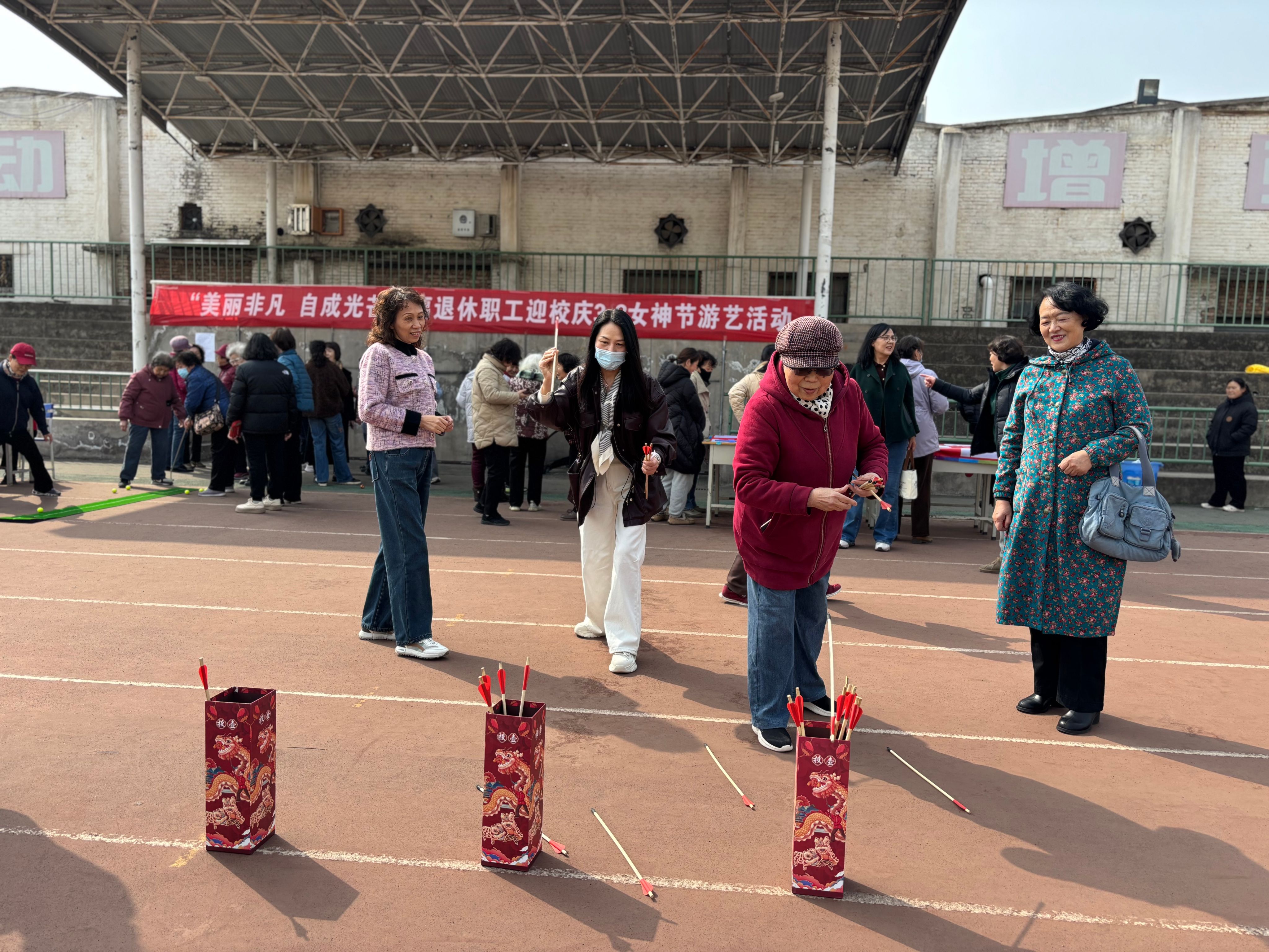 为积极营造建校七十周年氛围,丰富离退休教职工文化娱乐生活,3月7日,100余名离退休女职工欢聚在莲湖校区田径运动场,参加“美丽非凡,自成光芒”迎校庆三八女神节游艺活动。
